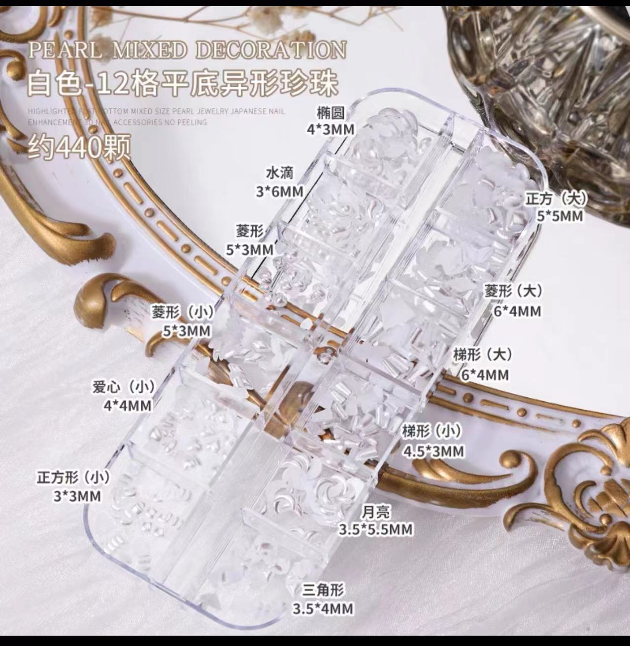 12-grid white semicircle Pearl, 12-grid white round pearl, 12-grid beige semicircle Pearl, 12 grid beige round...