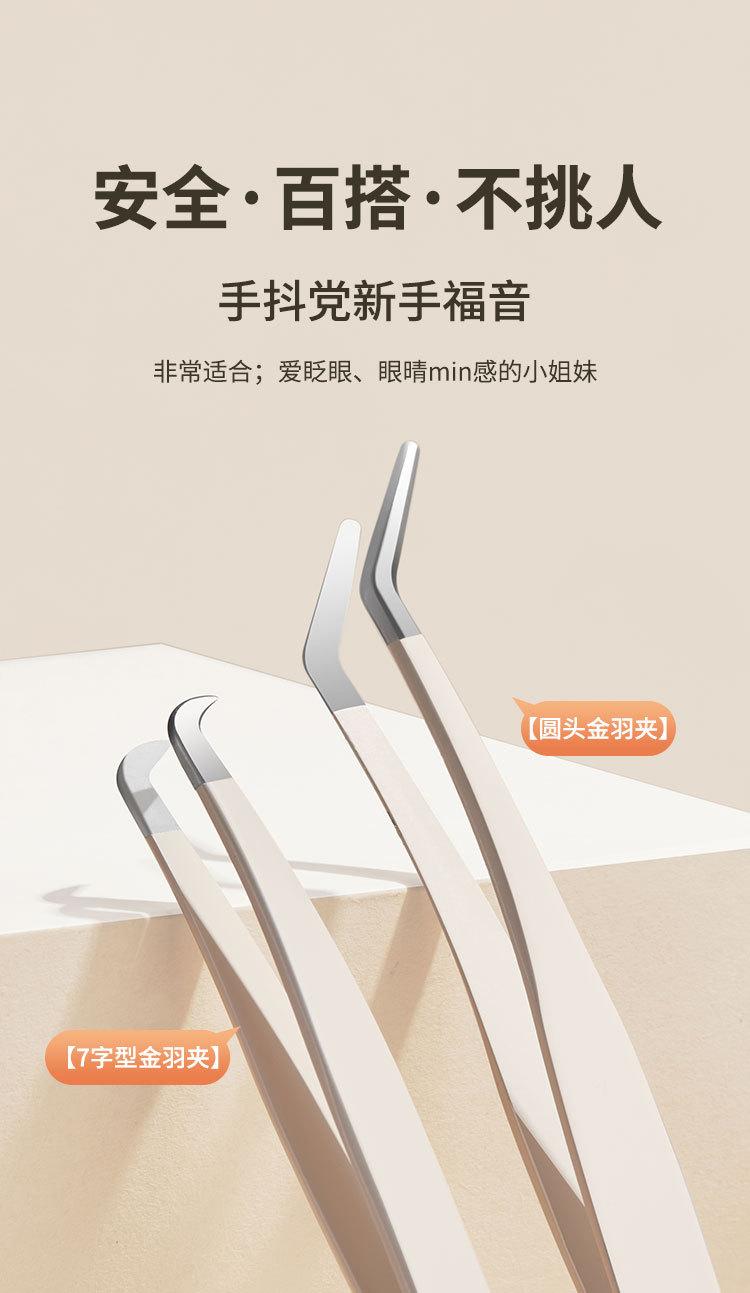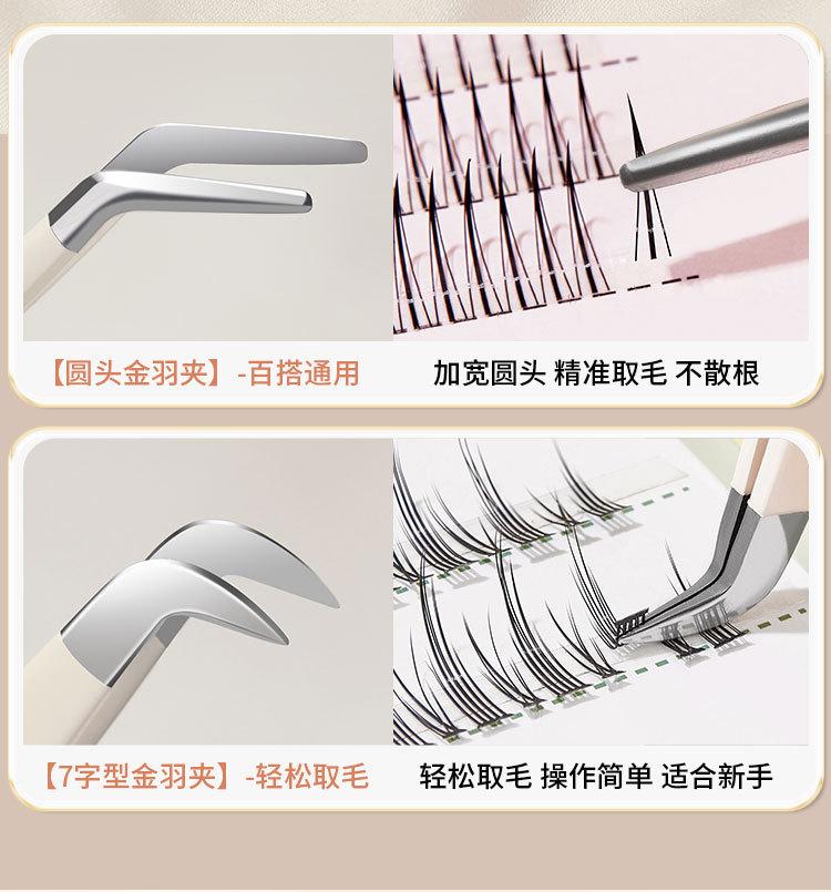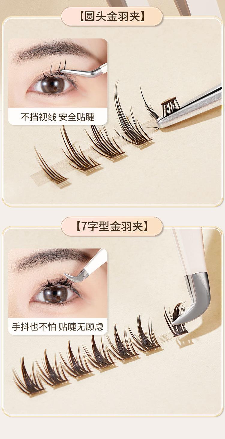 Round head false eyelashes gold feather clip, 7-shaped false eyelashes gold feather clip, Rounded false eyelas...
