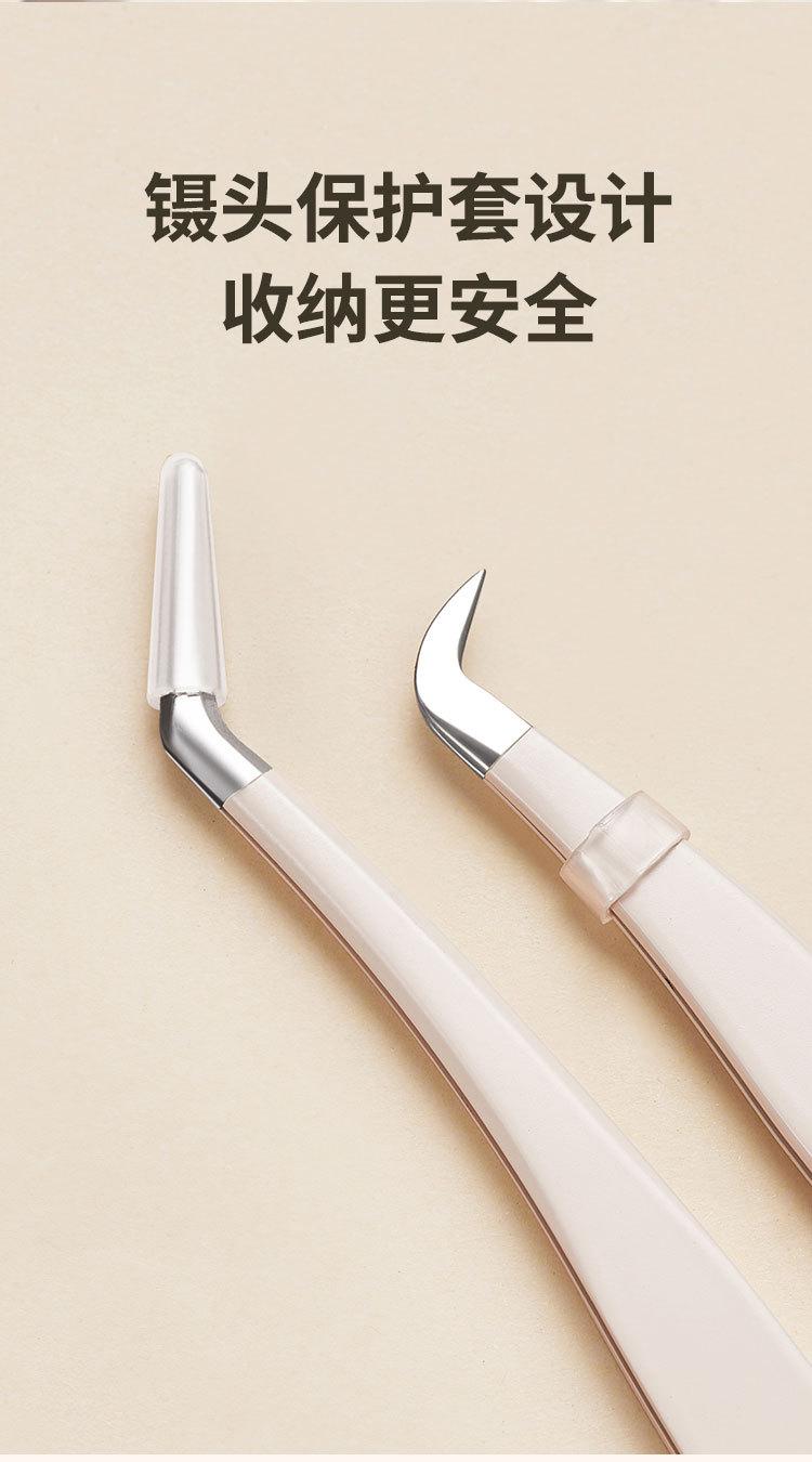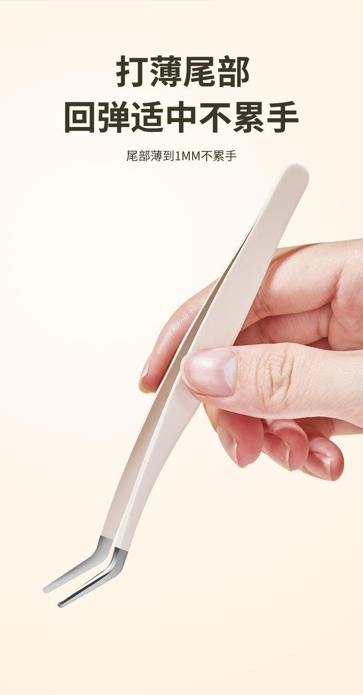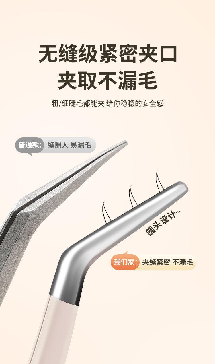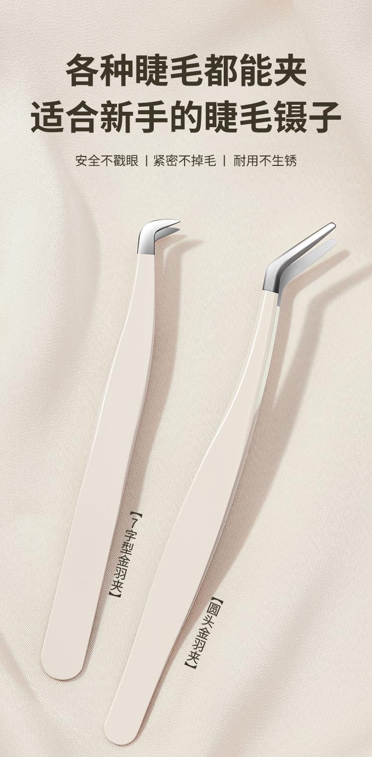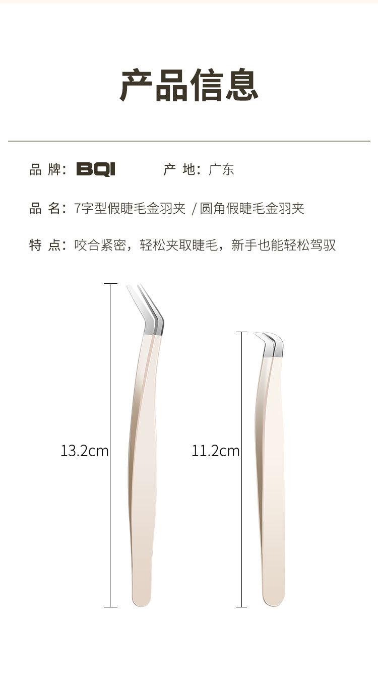 Pinzas para Pestañas Postizas BQI Cabeza Redonda Pluma Dorada en Forma de 7 Pinzas para Pestañas de Injerto para Principiantes Recortar Pestañas Especial para Mujeres