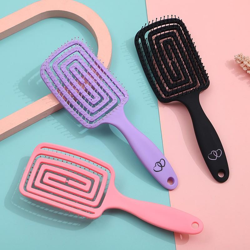 Peine cuadrado de espalda hueca para mujer, para cabello largo, masaje de cuero cabelludo húmedo y seco, esponjoso, de venta caliente