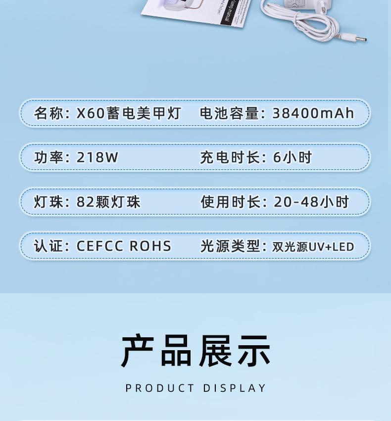 Nueva lámpara de uñas portátil de 60 W, máquina de uñas con carga inalámbrica y almacenamiento, lámpara de terapia de luz para uñas, máquina secadora de uñas LED