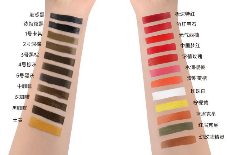 Charm black (for liquid, eyeliner), Concentrated dazzling black (milky, special for eyeliner), Khaki, Dark bro...