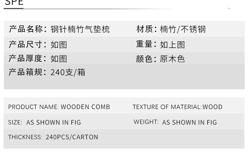 Venta al por mayor de fábrica peine de cojín de aire de bambú aguja de madera peine de madera cabeza peine de masaje de meridianos peine de bolsa de aire peine de madera para el cabello de uso doméstico