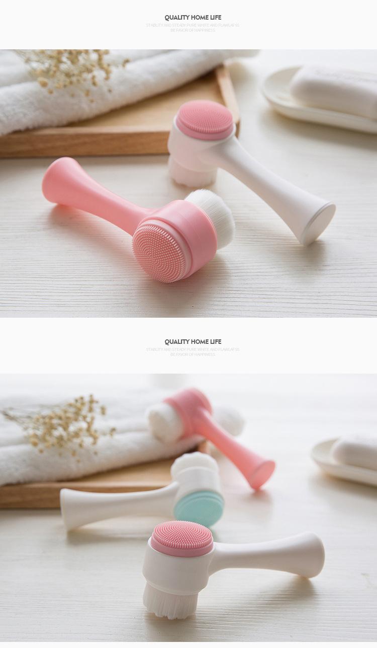 Cepillo facial de lana suave de silicona de doble cara, 3D, limpieza manual, desmaquillante, limpiador profundo de poros y puntos negros.