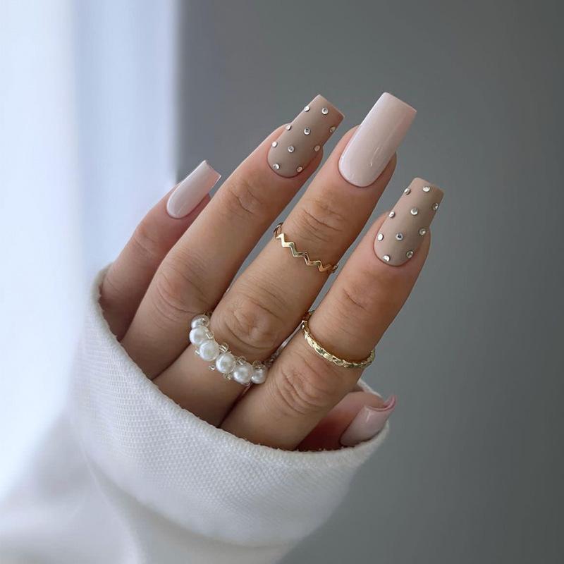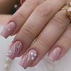 Comercio exterior, desgaste transfronterizo, belleza de uñas, pieza de uña, parche de uña con diamantes de imitación rosas esmerilados cuadrados, pieza de uña postiza terminada