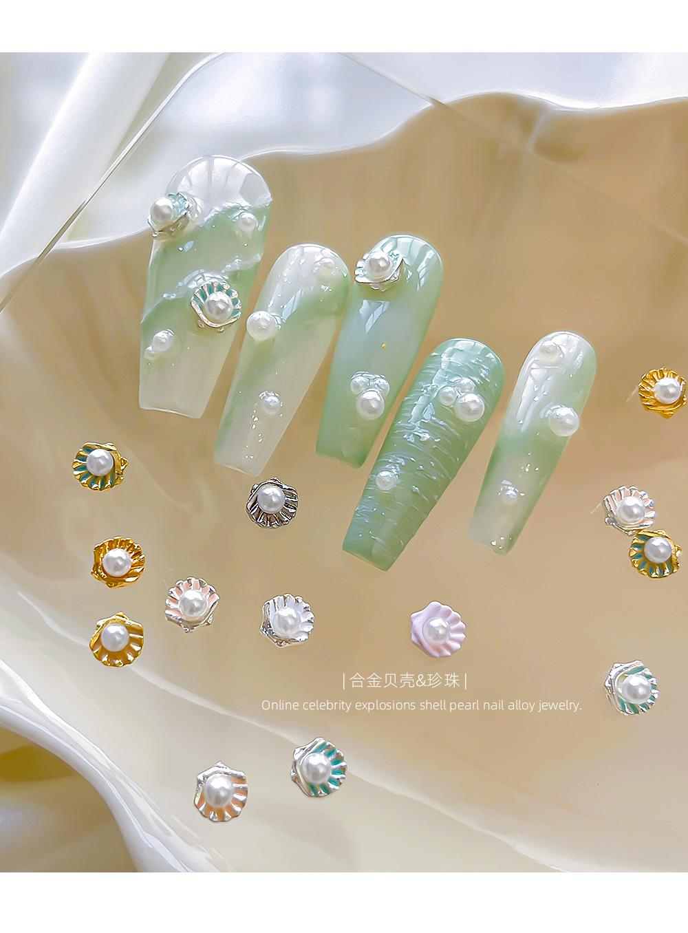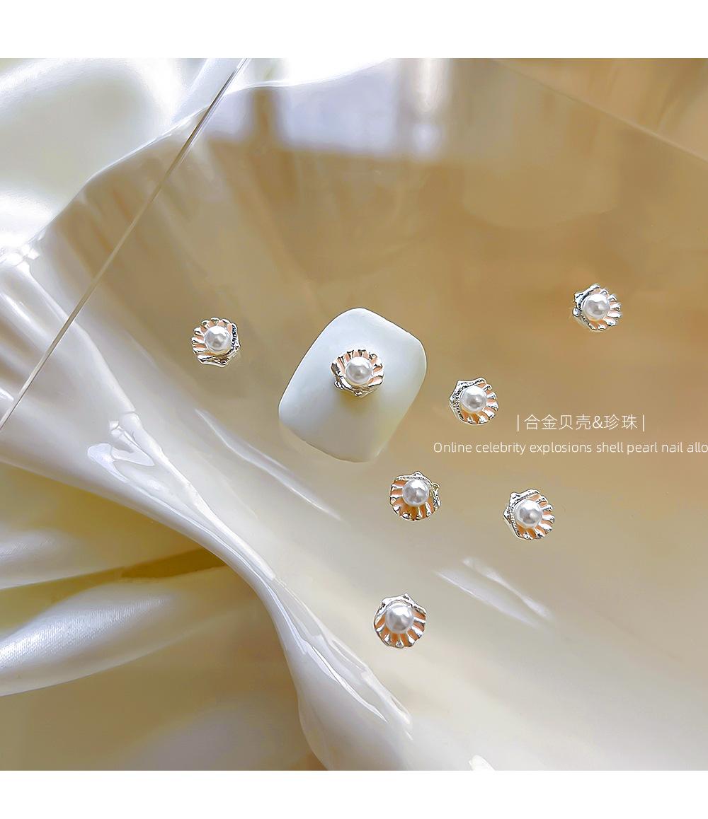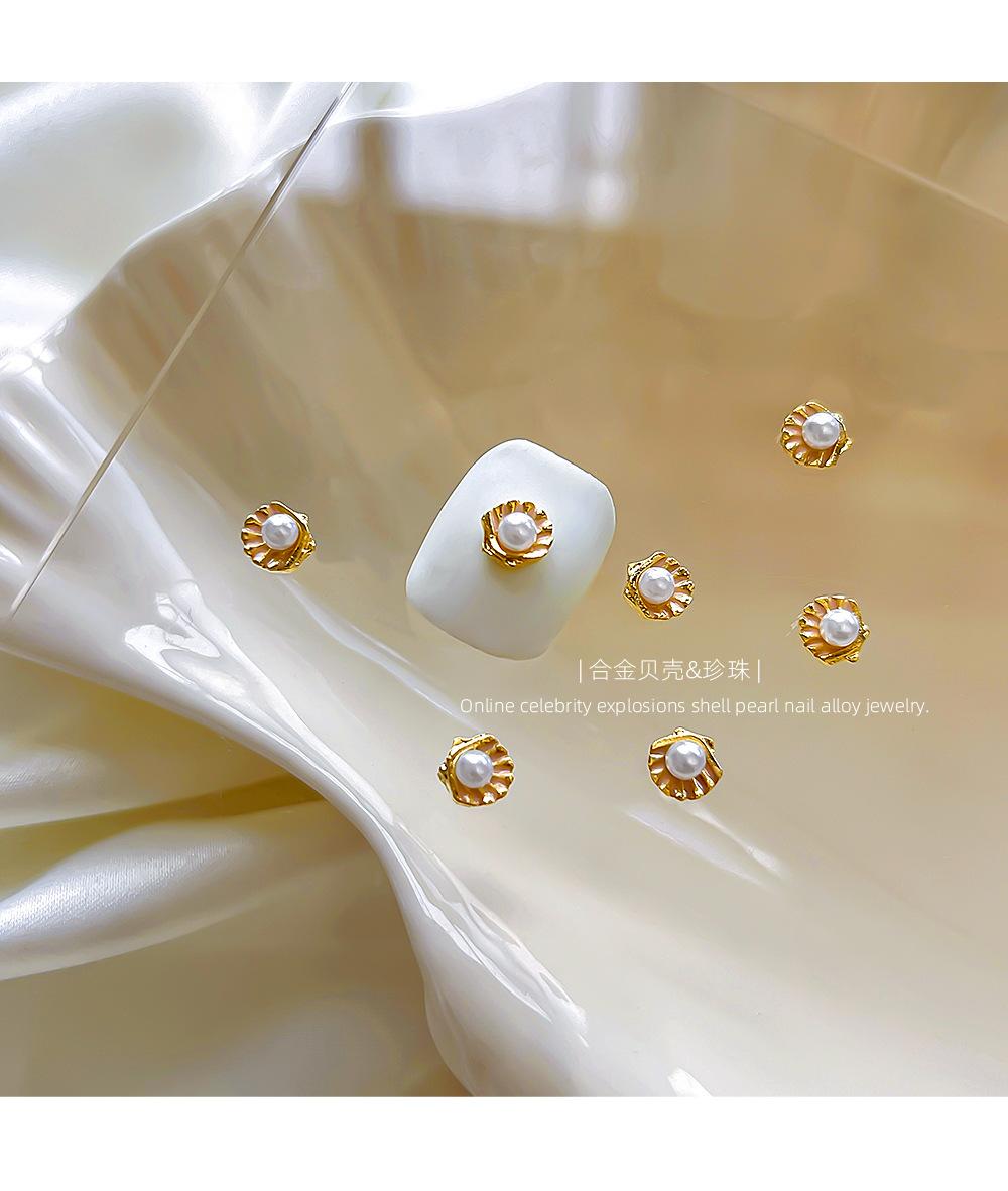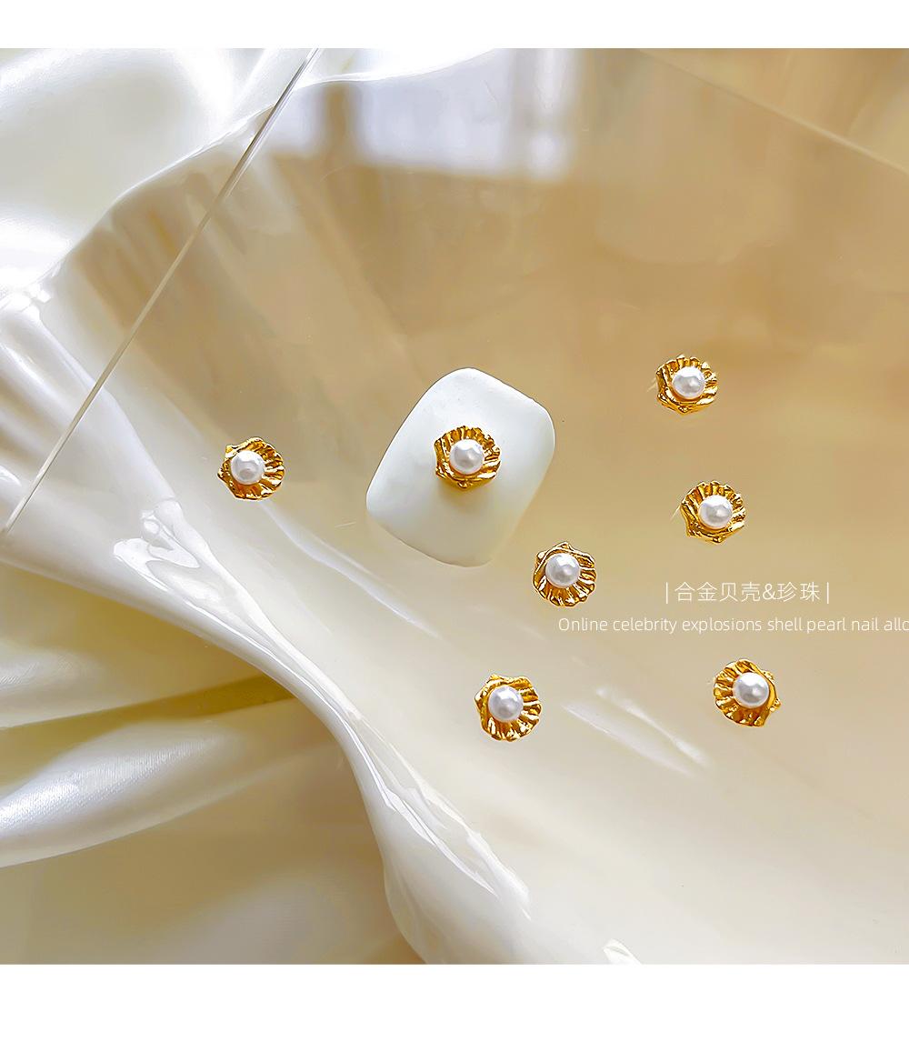 Nueva joyería de uñas con concha de perla, decoración de uñas con festón de color dorado y plateado de aleación tridimensional, pequeños accesorios de taladro al por mayor