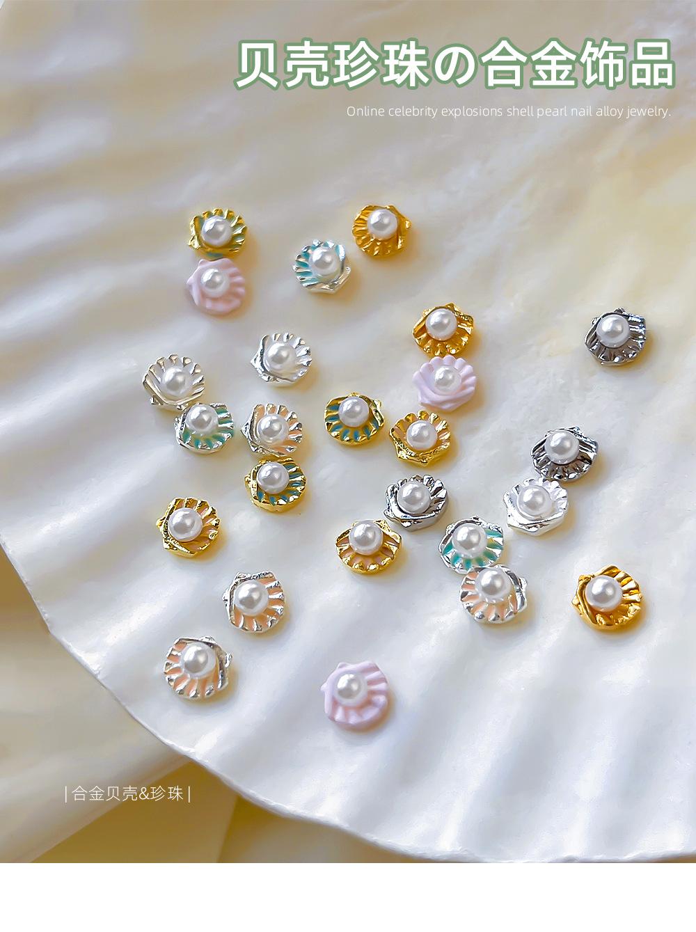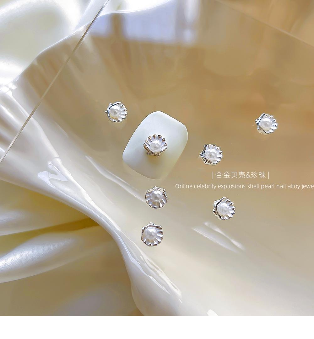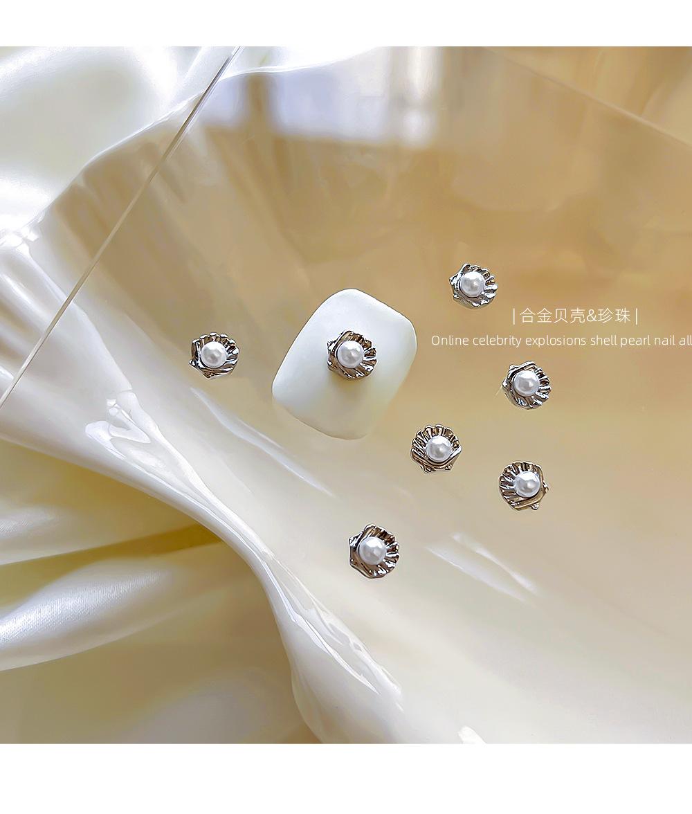 Nueva joyería de uñas con concha de perla, decoración de uñas con festón de color dorado y plateado de aleación tridimensional, pequeños accesorios de taladro al por mayor