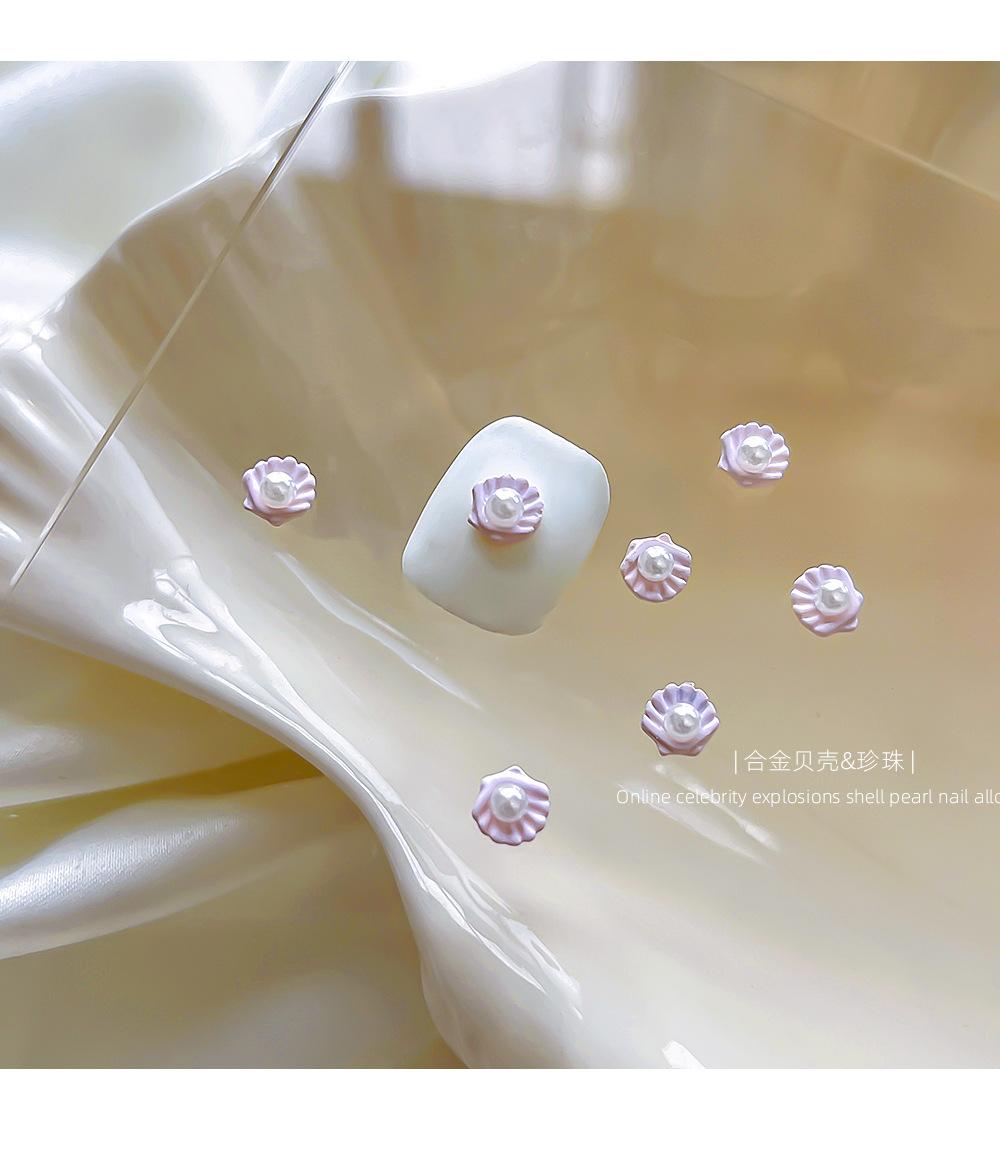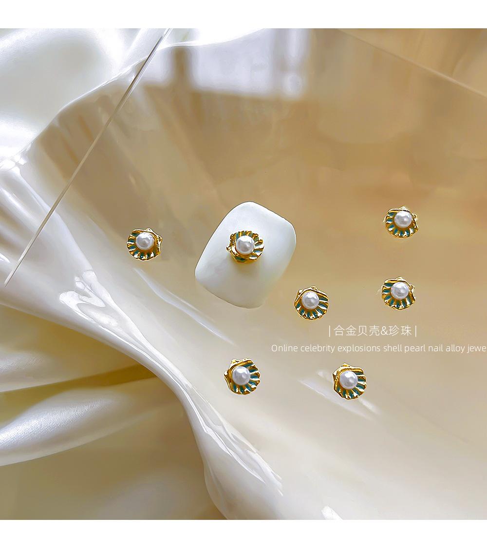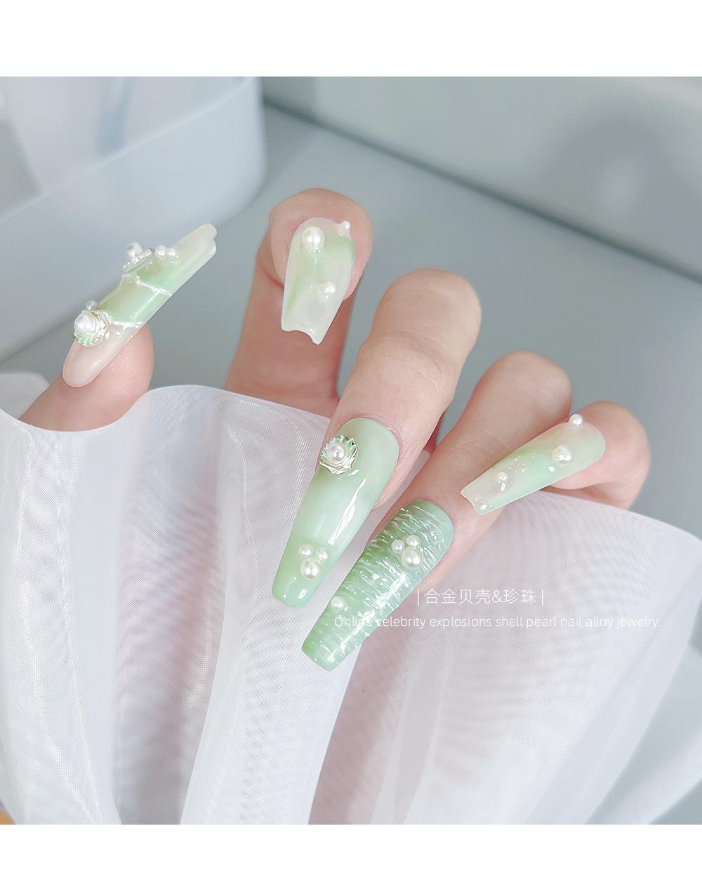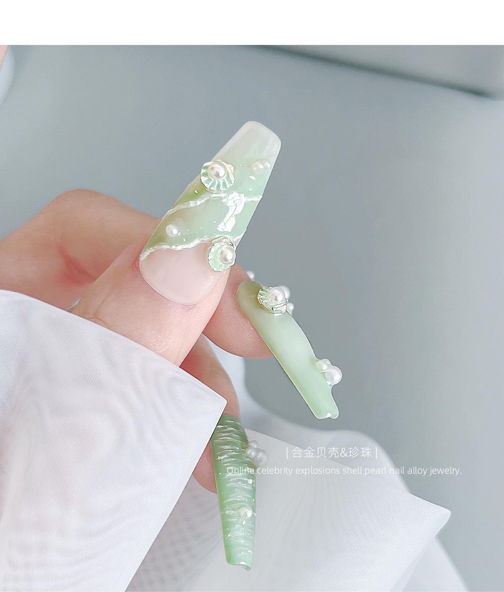Nueva joyería de uñas con concha de perla, decoración de uñas con festón de color dorado y plateado de aleación tridimensional, pequeños accesorios de taladro al por mayor
