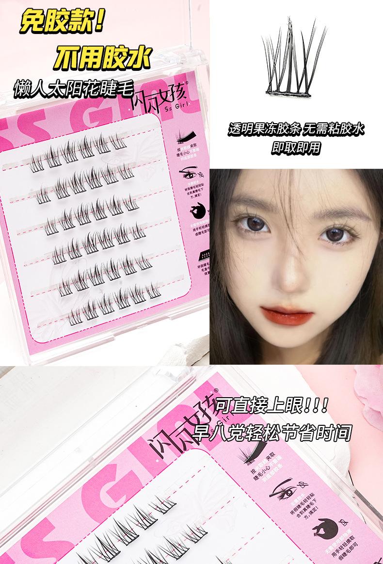 Pestañas postizas de girasol sin pegamento desechables de racimo individual reutilizables autoadhesivas de larga duración suaves para principiantes