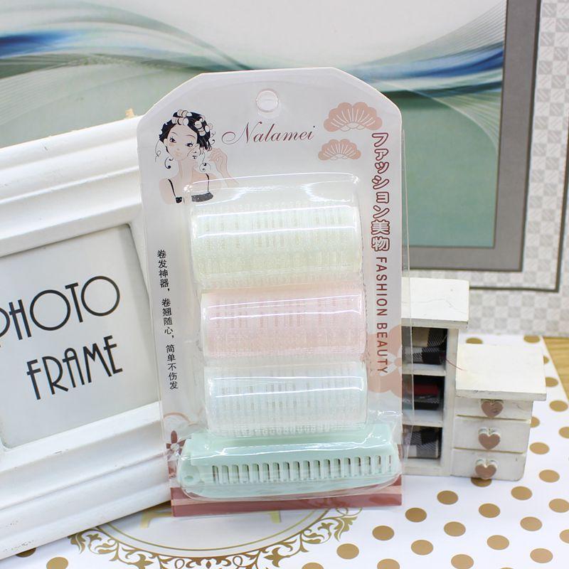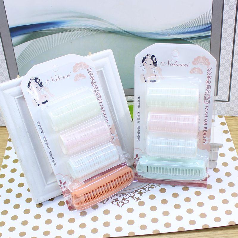 Versión coreana de rizador de pelo de plástico con tarjeta, peine tres más uno, juego de rizador de pelo, flequillo de aire perezoso, herramienta para rizar el pelo de la madre