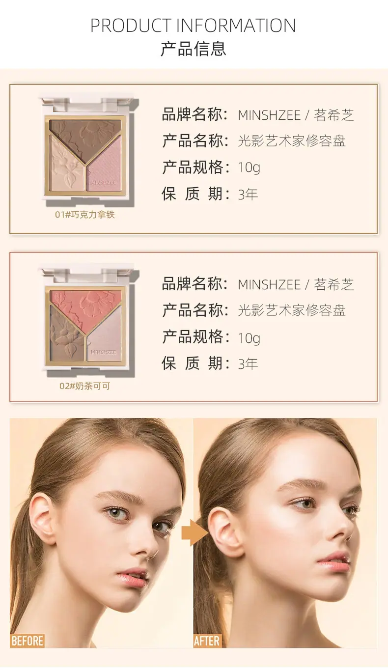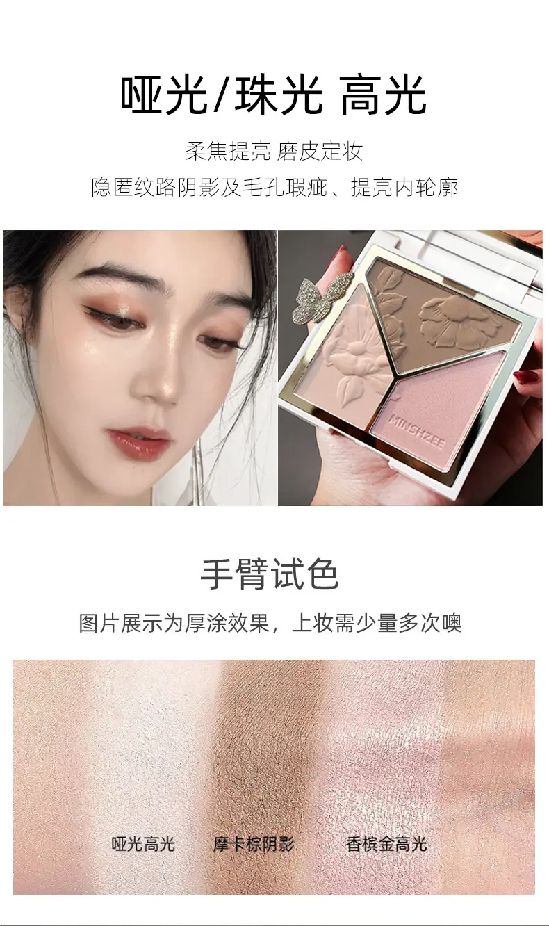 Ming Xizhi Paleta de Contorno Iluminadora Resaltadora Sombra Mate con Glitter Rubor Iluminador Corrector Contorno Paleta Todo en Uno Transfronteriza