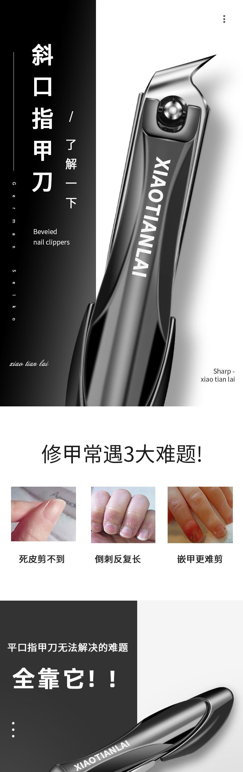 Star black mantis nail Clippers 3-piece set [Medium Flat + medium oblique + large flat]]