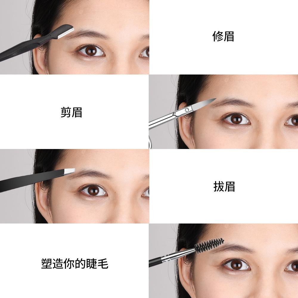 Tijeras pequeñas de acero inoxidable para recortar cejas para hombres y mujeres, traje para principiantes, cuchillo para recortar cejas, peine, tijeras, cepillo para cejas, traje de 5 piezas