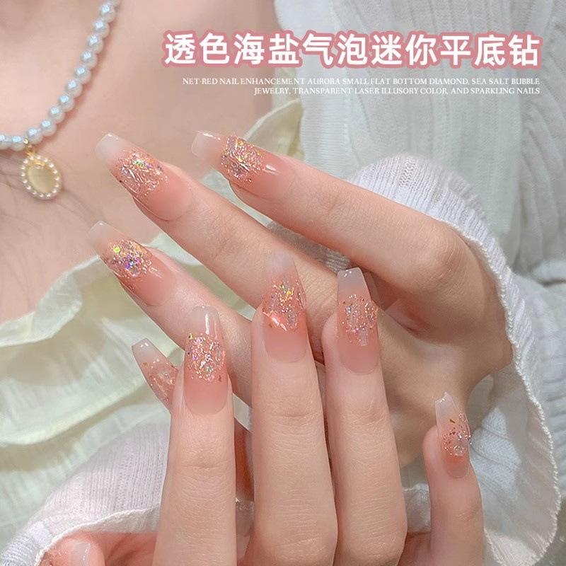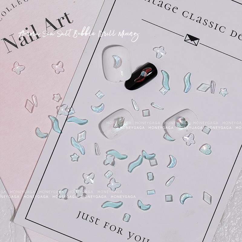 Sal Marina Burbuja Arte de Uñas Taladro Mixto 2025 Nuevo Mini Fondo Plano Forma Especial Taladro Tamaño Pequeño Vidrio Transparente Accesorios de Taladro