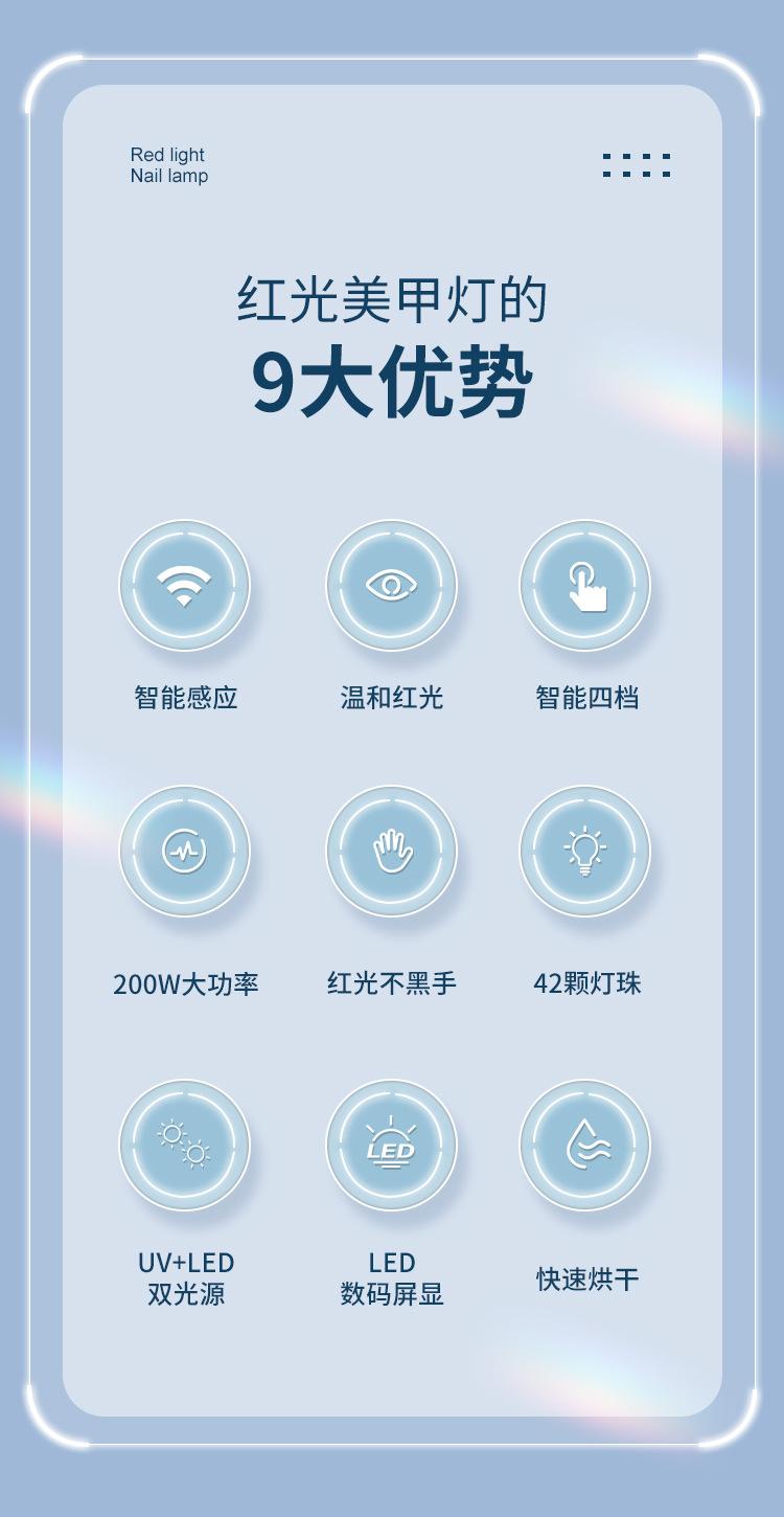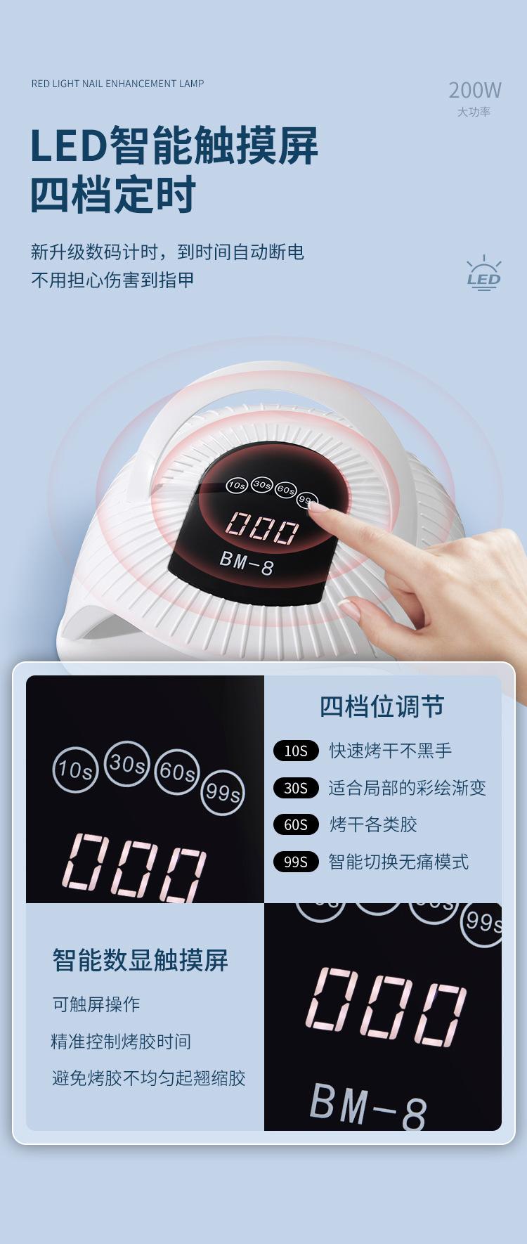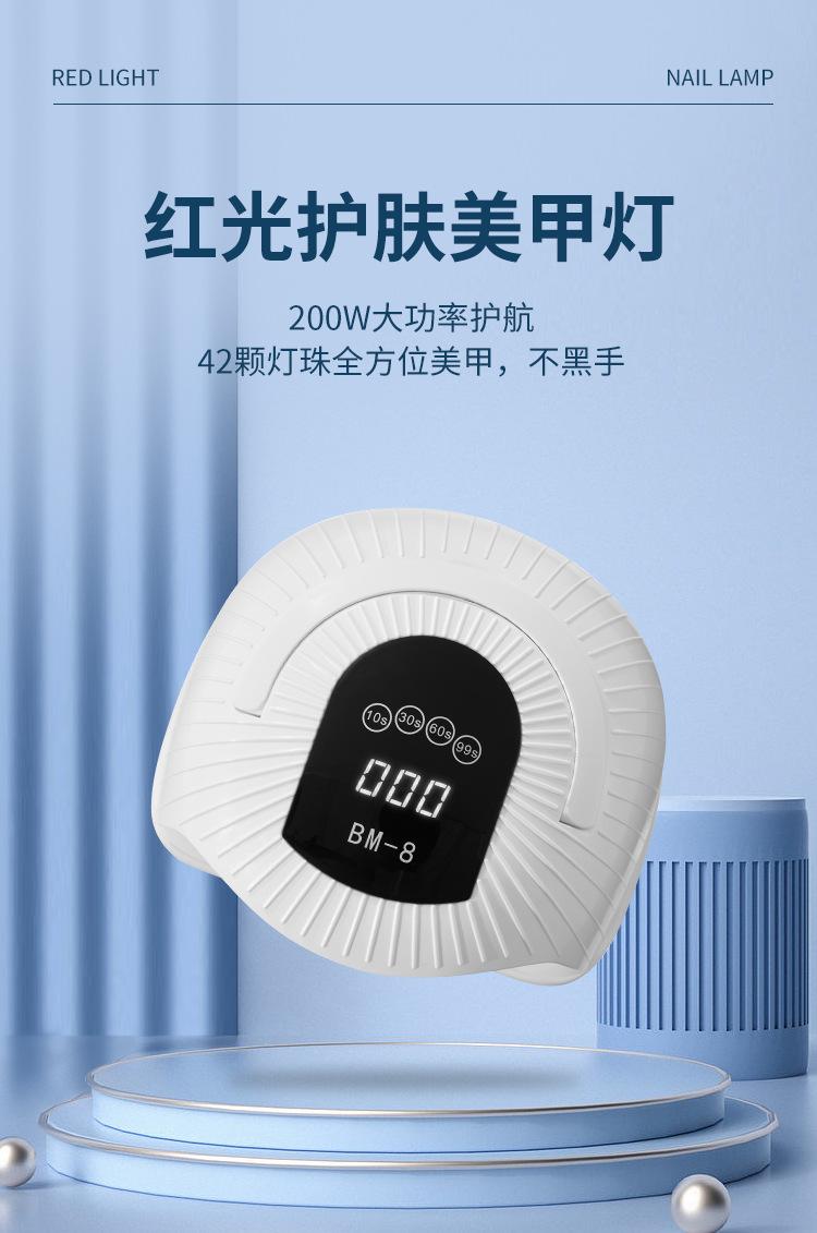 Máquina de fototerapia portátil con luz roja LED para uñas BM-8, lámpara para hornear pegamento para esmalte de uñas, máquina de manicura UV, luz de fototerapia.