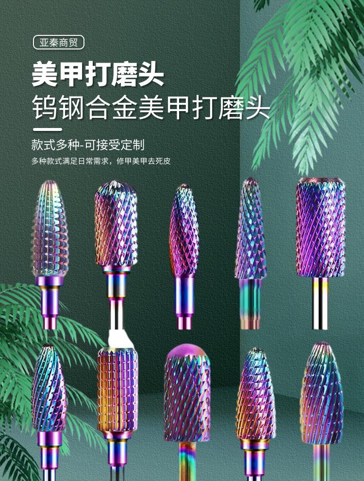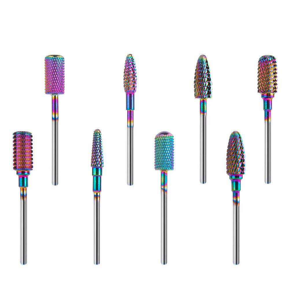 Cabezal de pulido de uñas de acero de tungsteno de colores, cabezal de maíz para la eliminación de uñas, cabezal de pulido de uñas de manicura, cabezal de pulido de uñas de acero de tungsteno arcoíris
