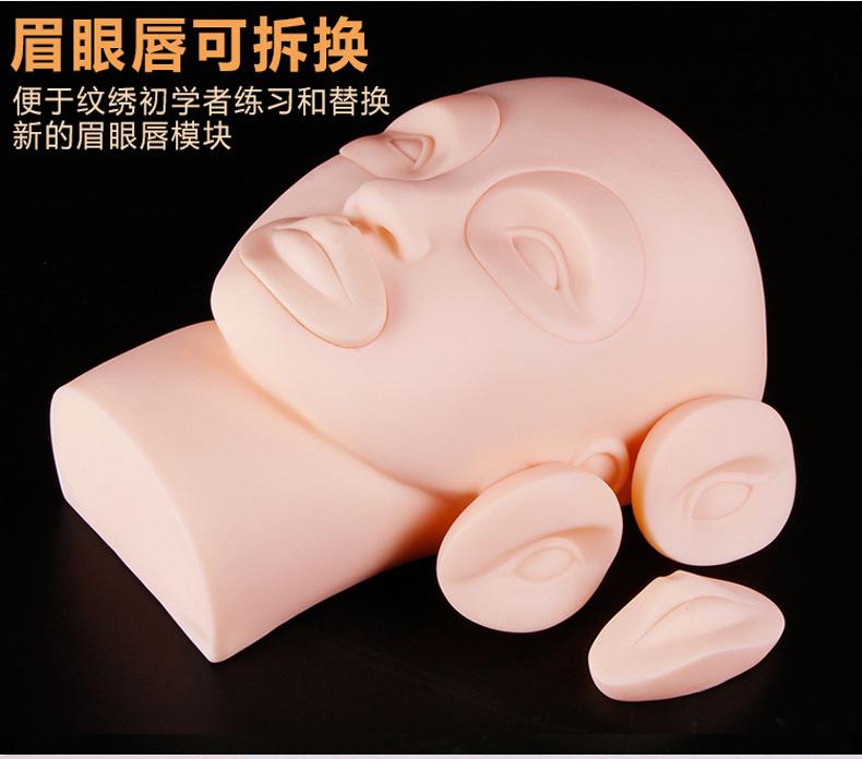 Molde de cabeza de práctica para tatuaje semipermanente para principiantes, cabeza de maniquí para tatuaje de cejas, labio flotante, cejas reemplazables, modelo de cabeza para ojos y labios