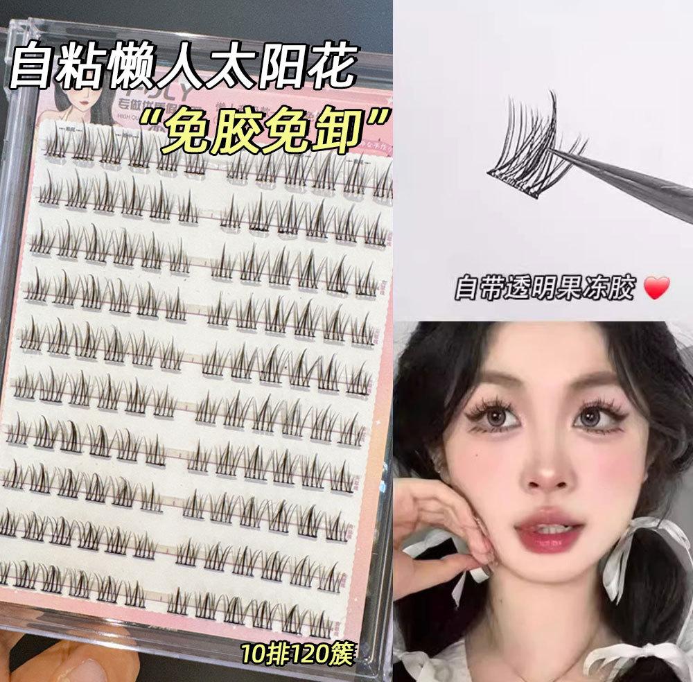 Pestañas postizas FOLY autoadhesivas sin pegamento de girasol de gran capacidad 120 naturales Barbie simulación segmentadas perezosas racimo individual