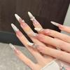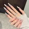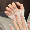 Taiwu Original [Queso Mousse] Serie Miu Estilo Dulce Irregular Blanco Lunares Franceses Cuadros Pedrería Uñas Postizas