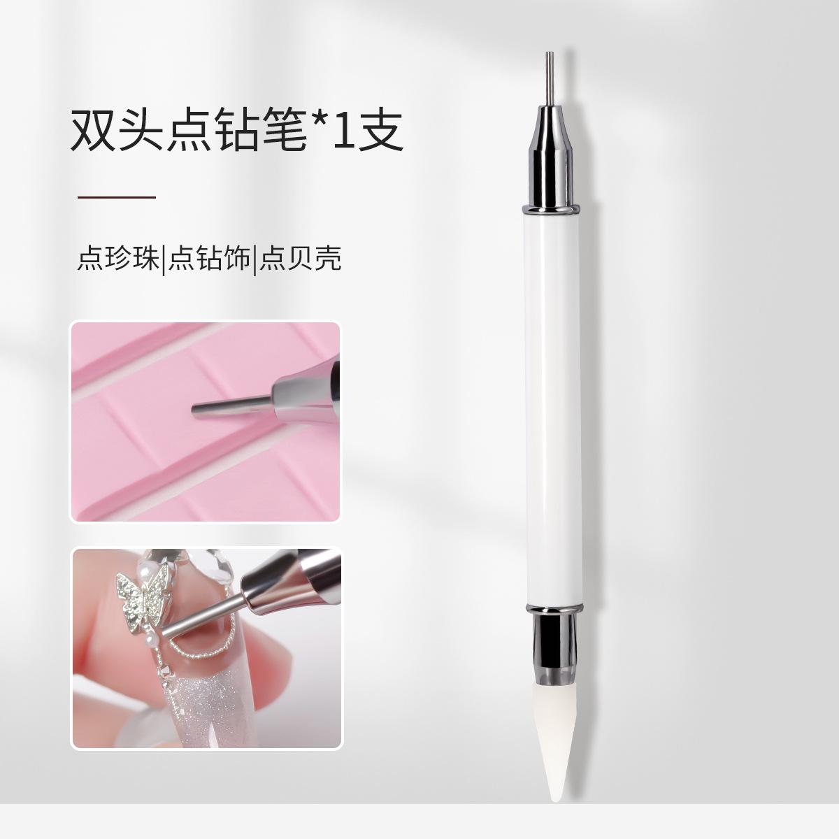 Herramientas Lápiz para Uñas Venta al por Mayor Blanco Doble Punta Lápiz para Taladrar Puntas Cabeza de Crayón Silicona Lápiz de Presión Punta Decoración Bola de Punto Pintura Flor