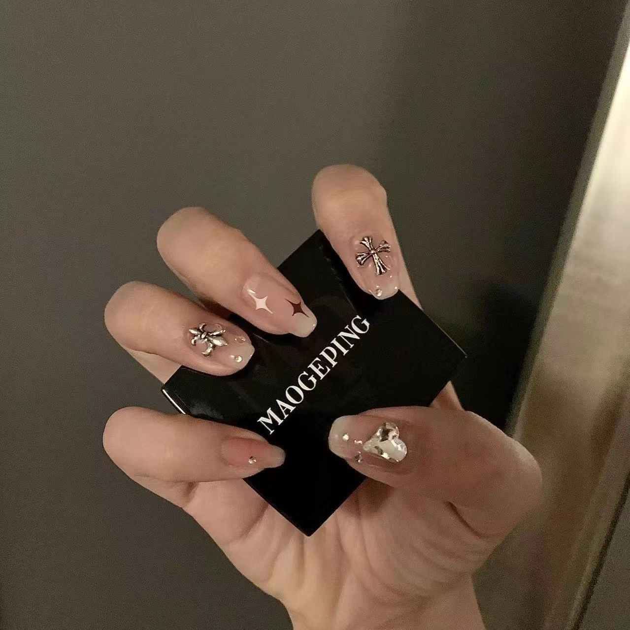 Manicura hecha a mano pura con un parche de uña postiza, arte de uñas terminado, estilo vintage ins de amor cruzado de Crocore