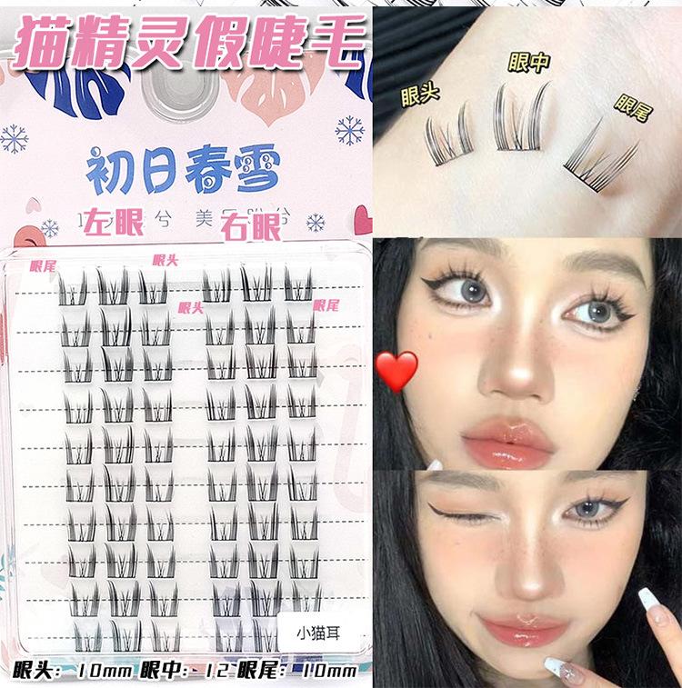 Orejas de Gatito Perezoso Naturales Gruesas Pestañas Postizas Genie de Racimo Único Serie Lazy Pestañas para Principiantes Imp