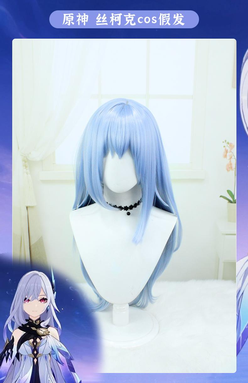 [Arte flotante] Peluca cos Original God Silk Kirk cosplay Estilo de cabello Puntas laterales azules Cuero cabelludo simulado Cabello largo