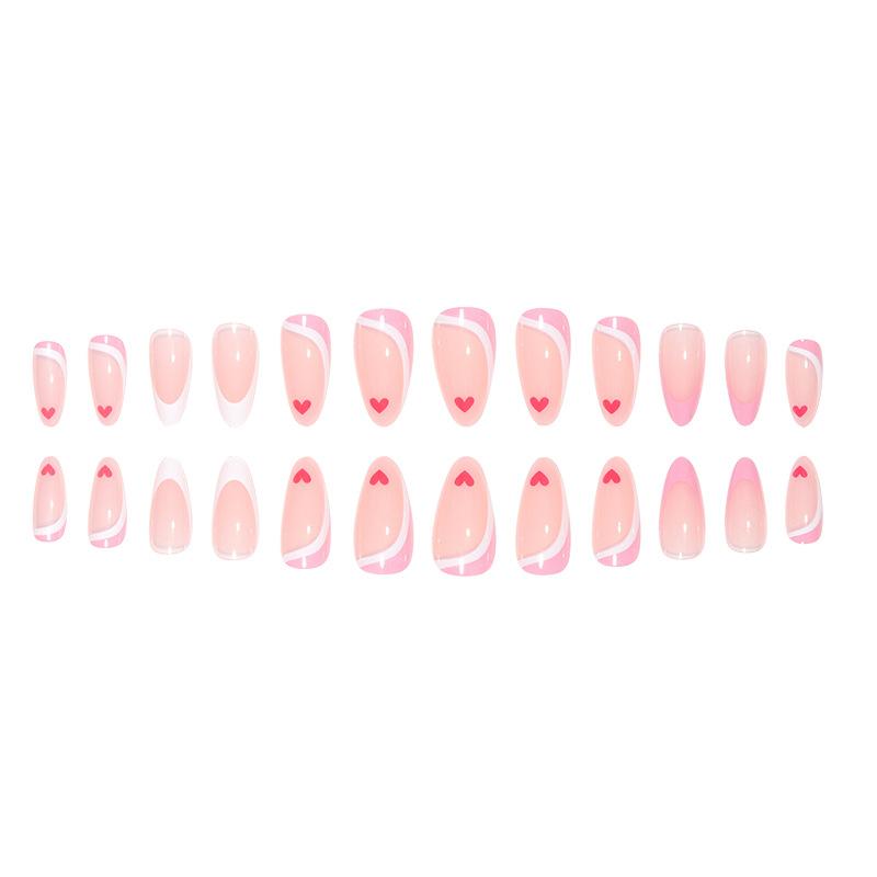 Uñas francesas con diseño de gotas de agua y amor rojo, estilo europeo y americano, parches de uñas blancos dulces y frescos, 24 piezas, uñas terminadas