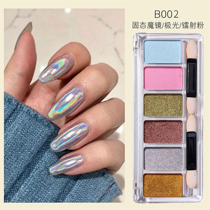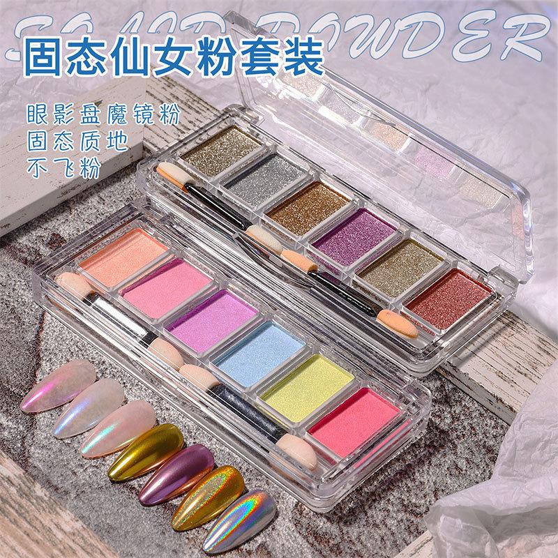 Compra Nuevo juego de 6 colores de polvos de espejo mágicos sólidos para decoración de uñas, polvo Aurora, polvo de espejo mágico sólido, polvo de hadas sólido al por mayor en Joom.pro