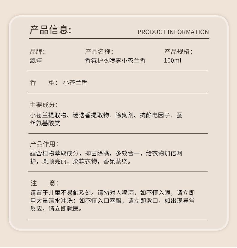 Piaoting fragrance protective clothing spray (freesia fragrance) 100ml