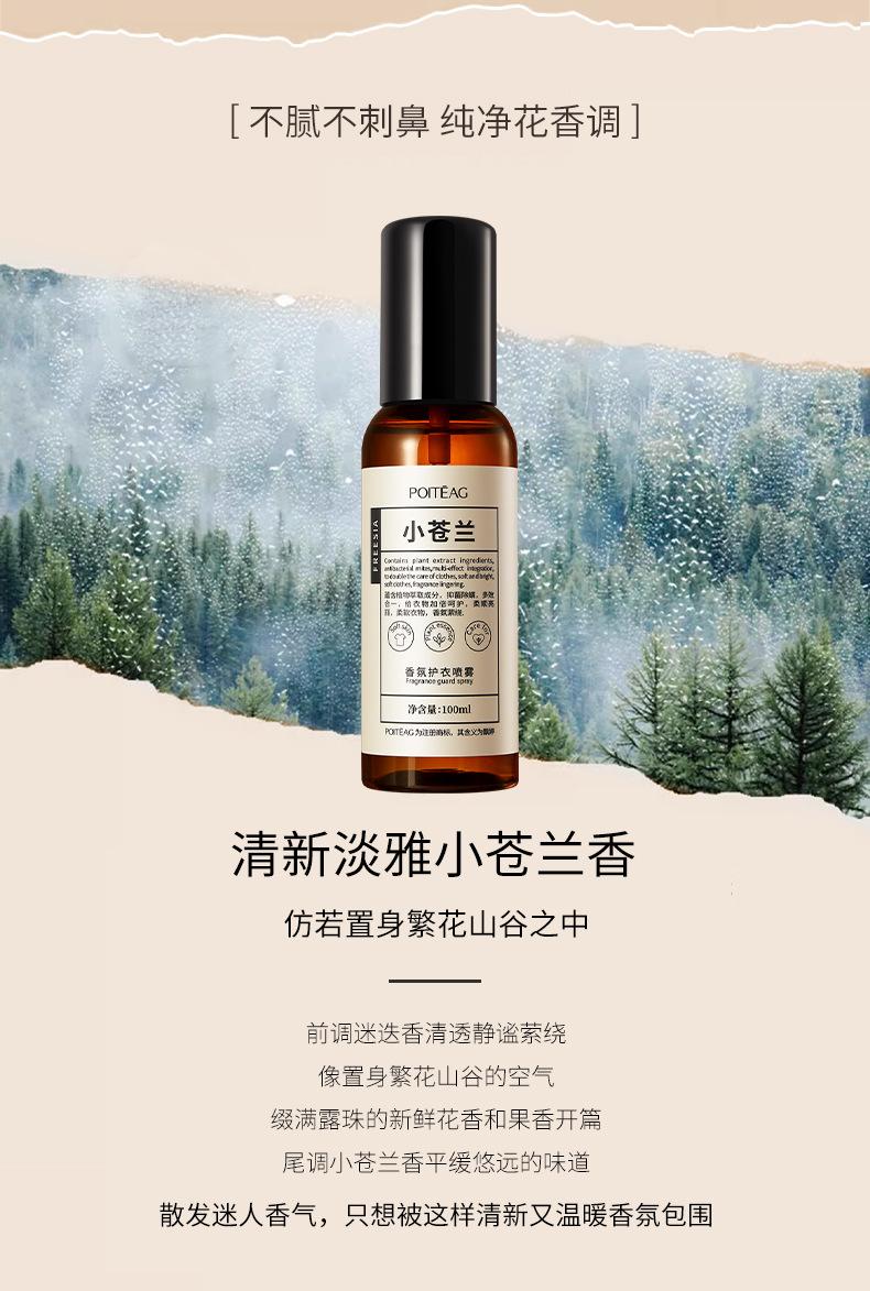Spray protector de ropa con fragancia Piaoting (pequeña fragancia azul) Fragancia en aerosol delicada de 100 ml, venta directa de fábrica.