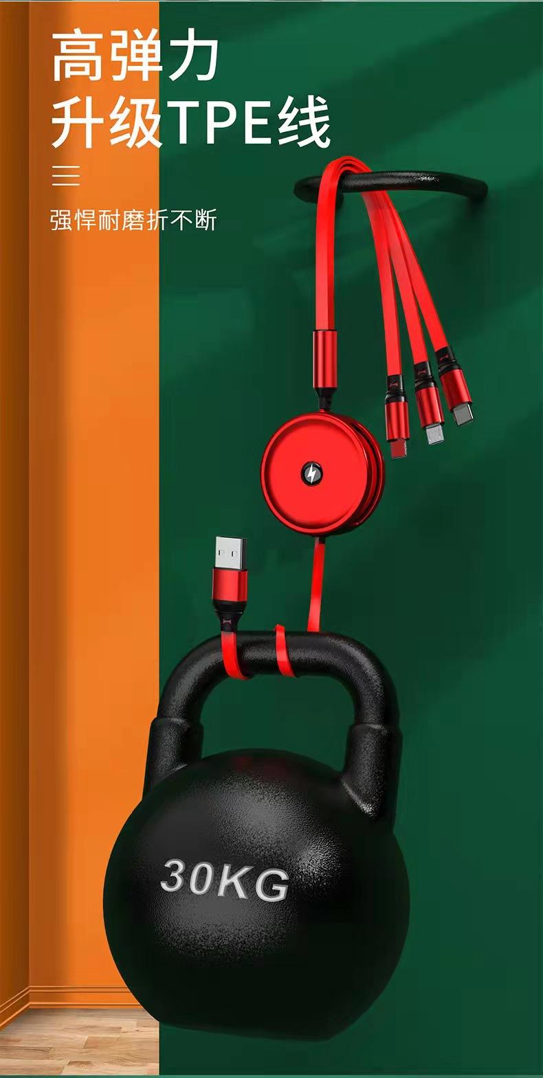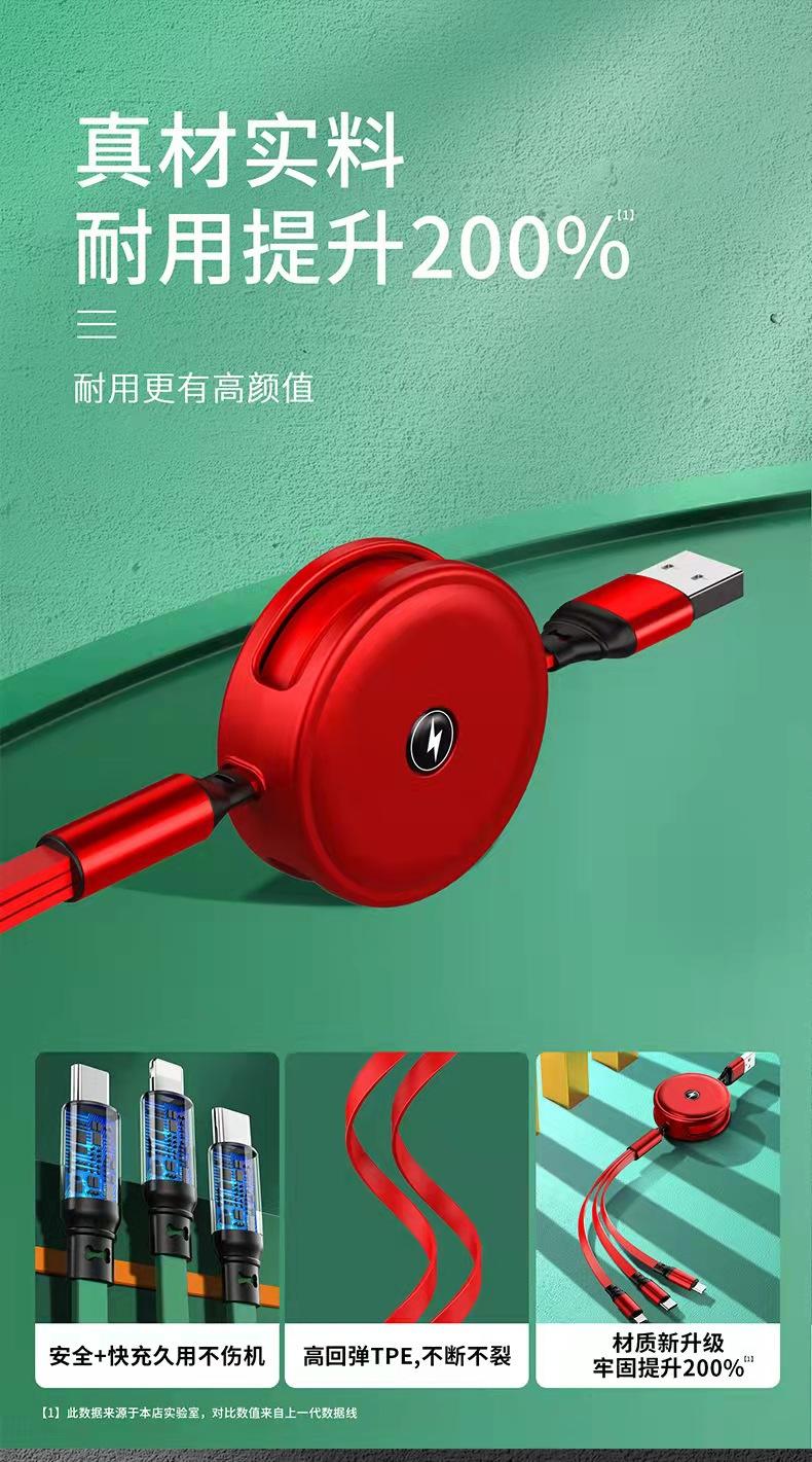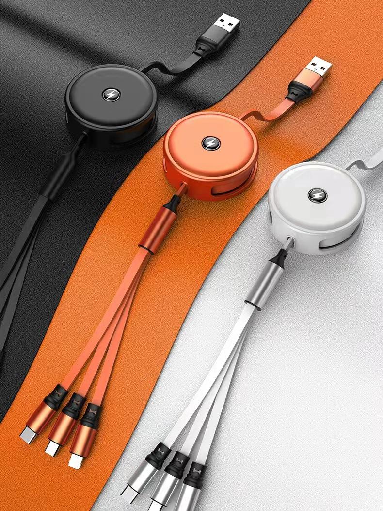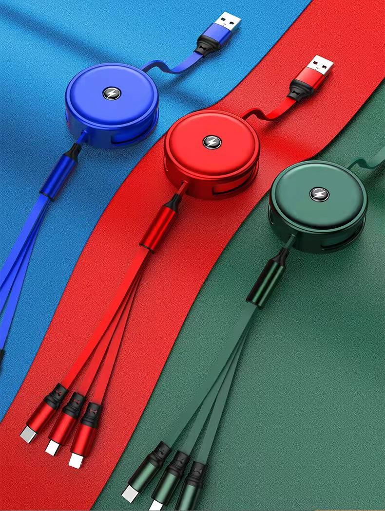 Cable de carga para teléfono móvil, cable de datos telescópico tres en uno USB de uno a tres para Android, Apple, carga rápida tipo C