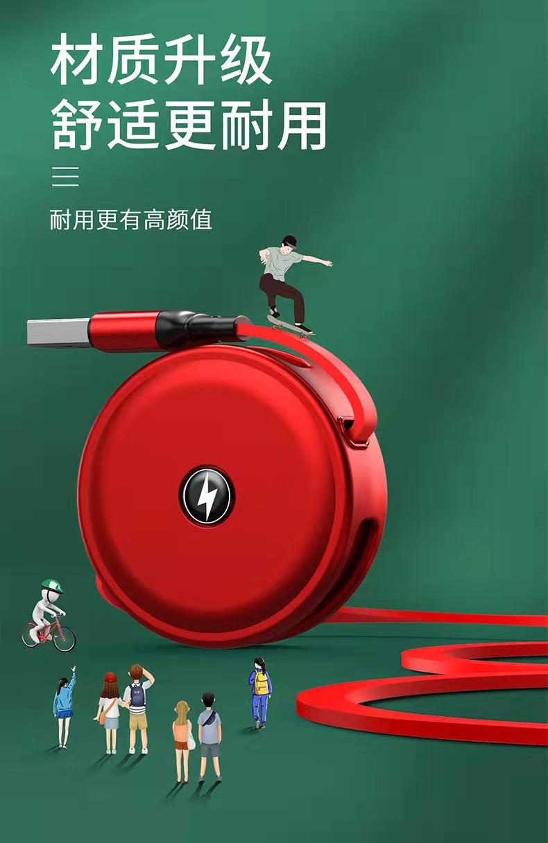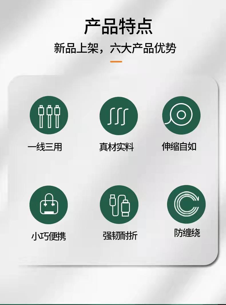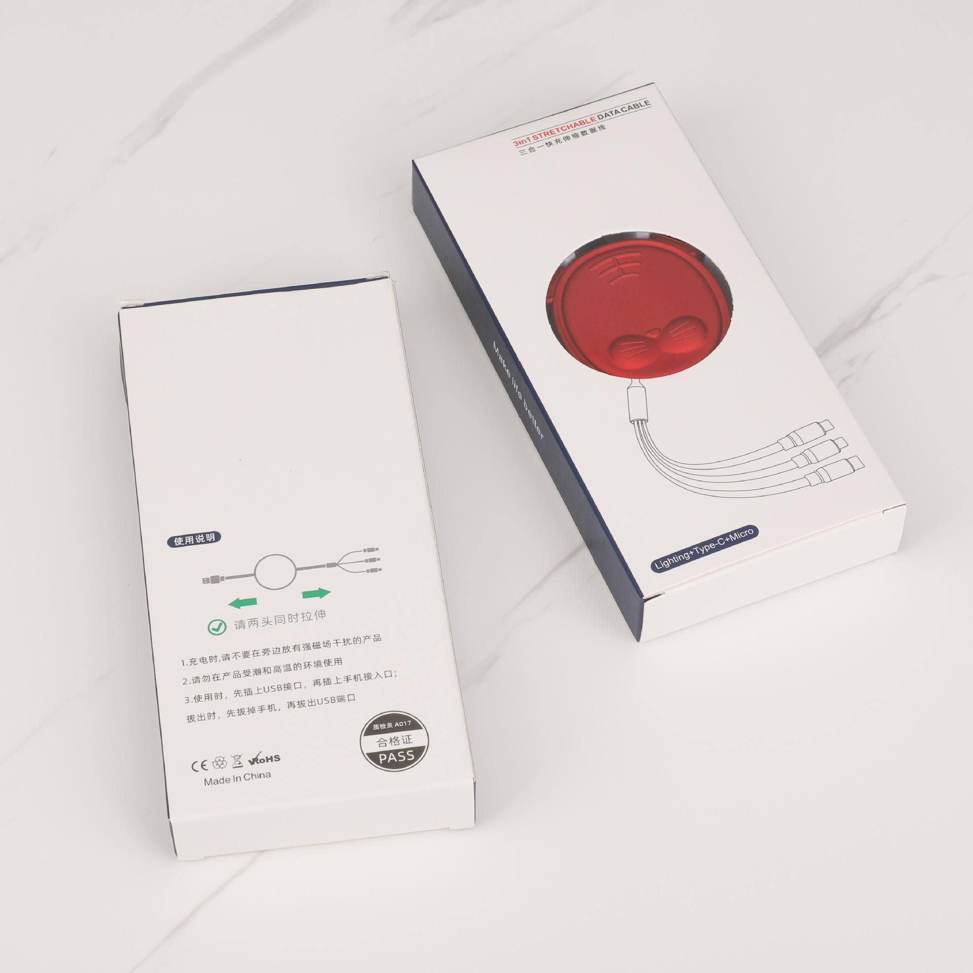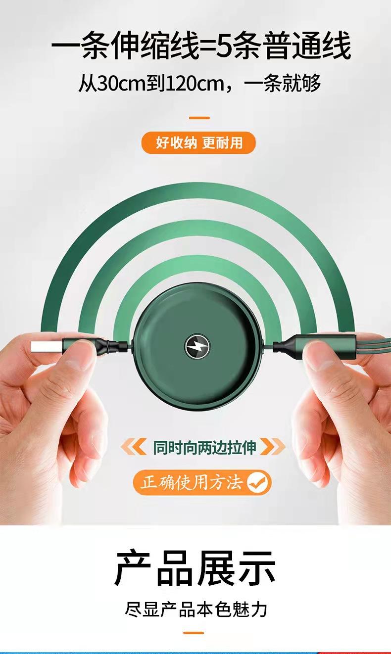 Cable de carga para teléfono móvil, cable de datos telescópico tres en uno USB de uno a tres para Android, Apple, carga rápida tipo C