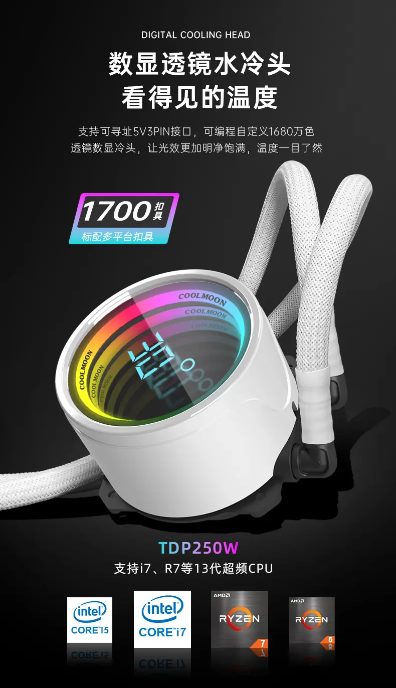 Hanyue 240 Radiador de CPU Refrigerado por Agua Argb Todo en Uno Radiador Refrigerado por Agua para Computadora 1700 Radiador Refrigerado por Agua Multiplataforma