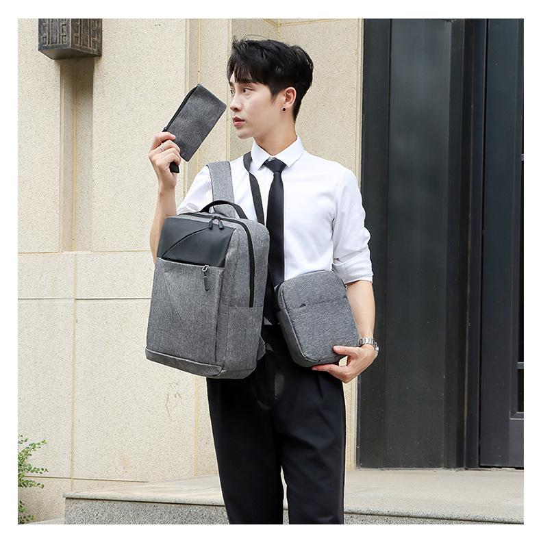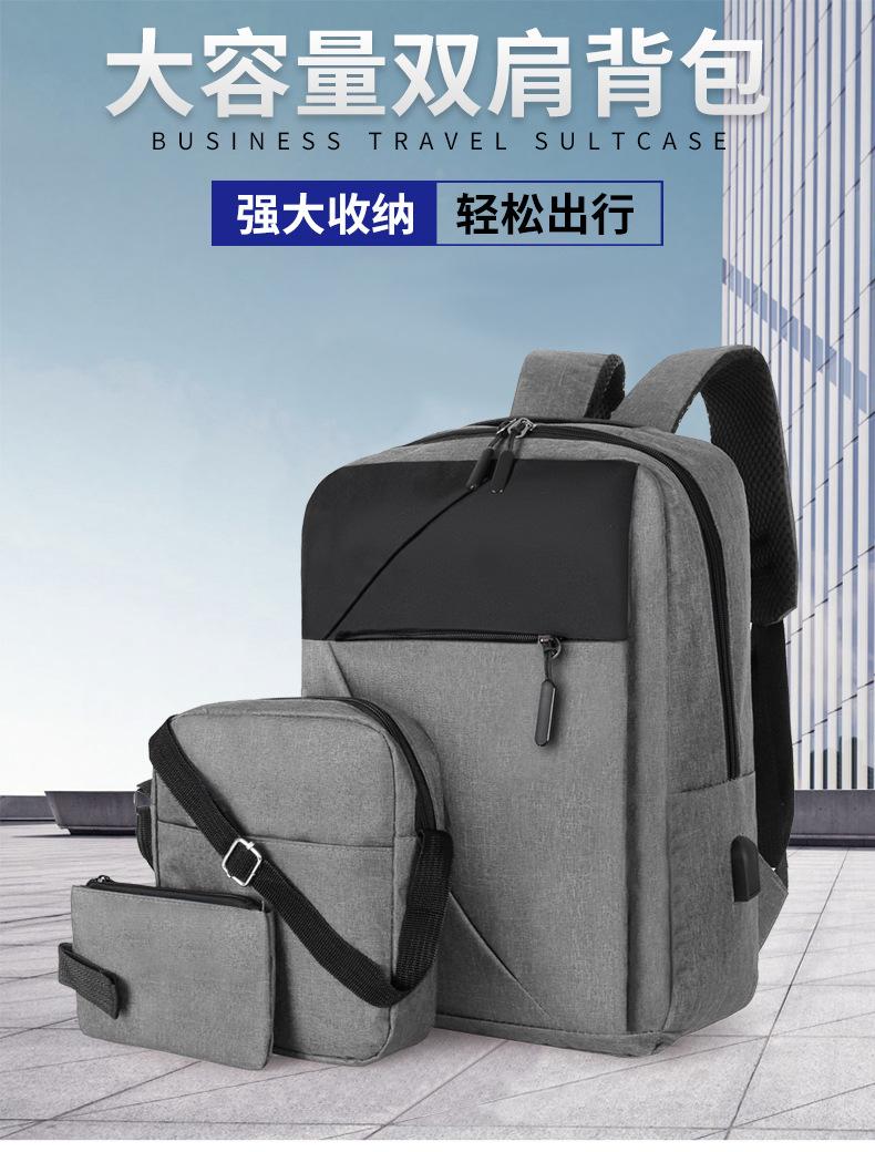 Mochila de negocios transfronteriza para hombre, bolso de computadora informal de gran capacidad, mochila multifunción con carga USB de tres piezas