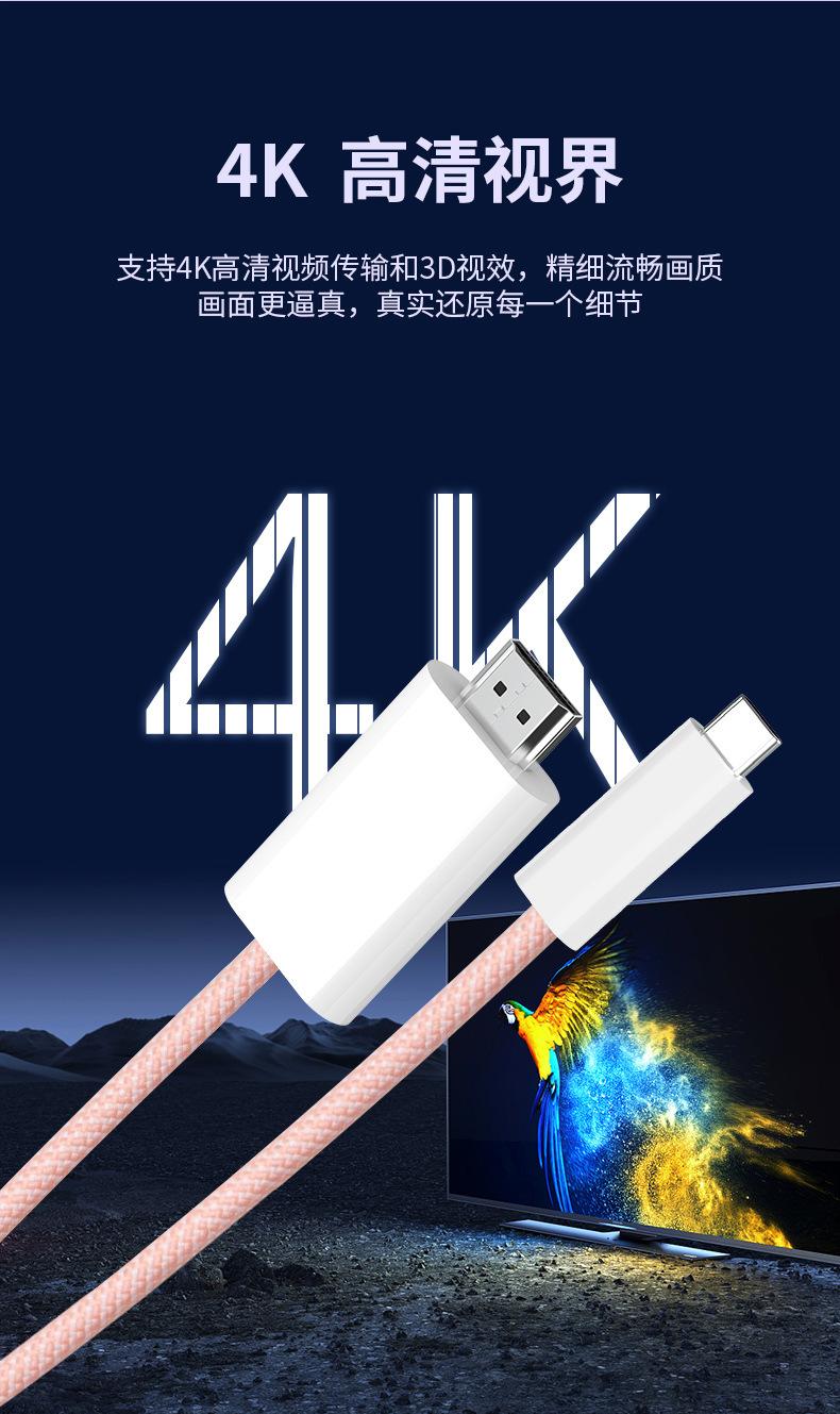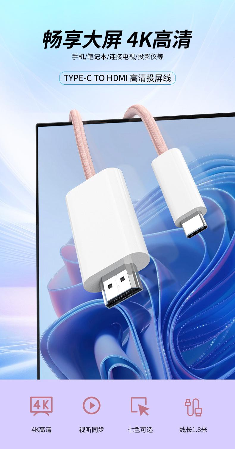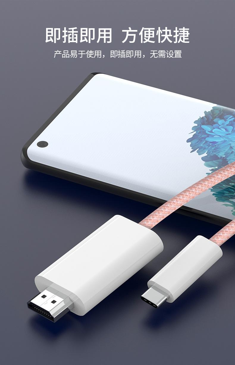 Adaptador tipo C a HDMI, cable de pantalla 4K60hz, teléfono móvil, computadora, conectado a TV, proyector con cable de pantalla.