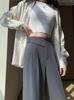 Pantalones anchos de algodón y lino bordados con colgante para mujer, primavera y verano 2023, holgados, rectos, de cintura alta, informales, adelgazantes.