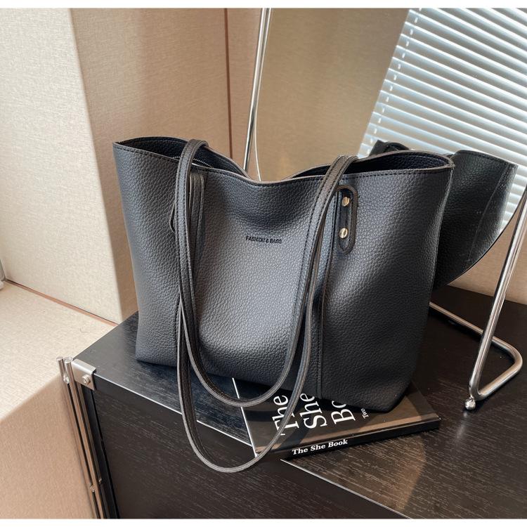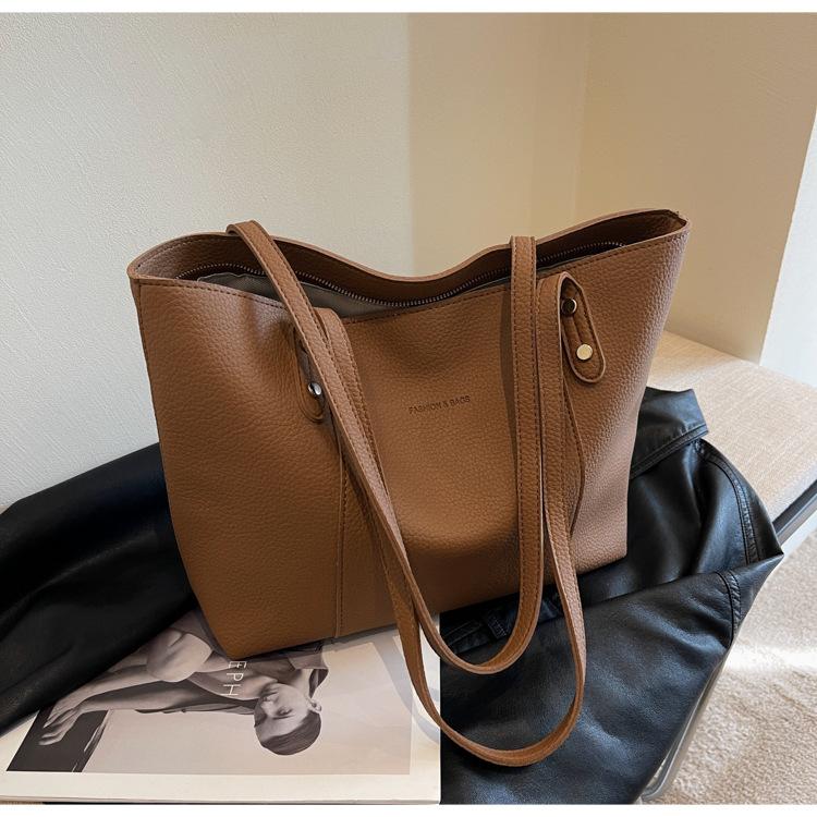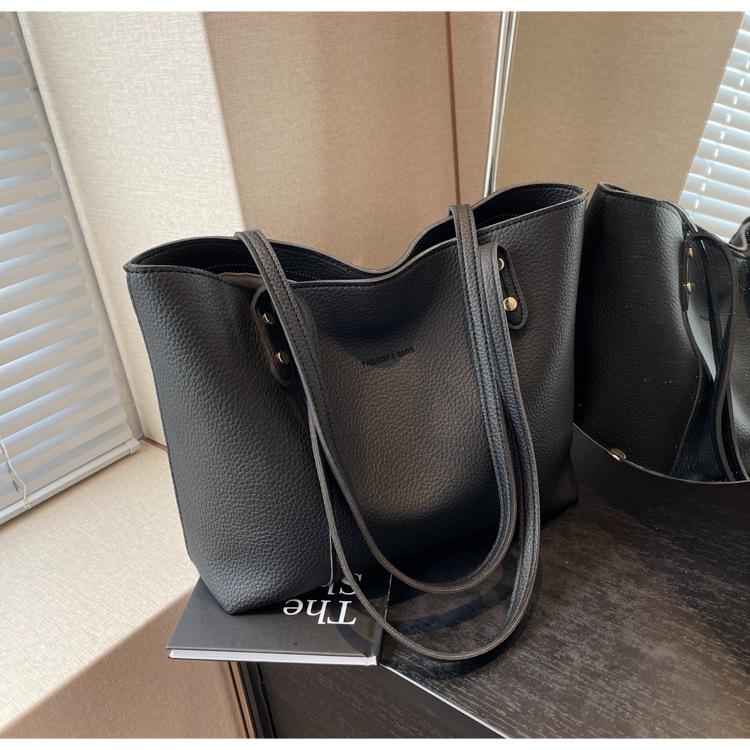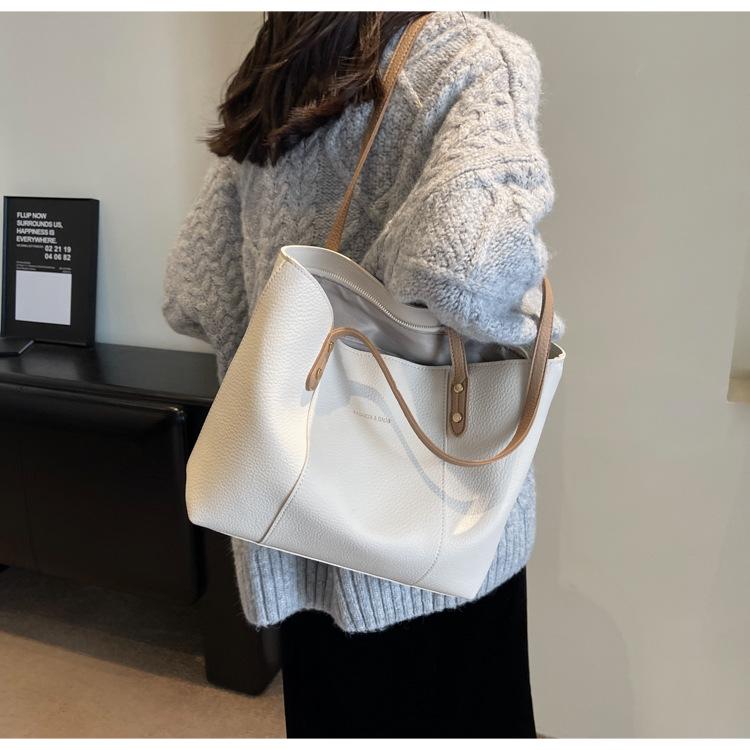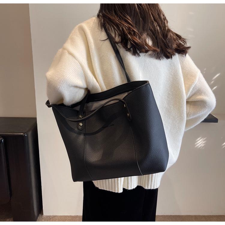 Bolso grande de estilo coreano popular de este año para mujer, nuevo bolso de hombro tipo cubo de alta gama retro combinable para otoño e invierno 2024