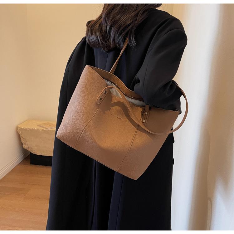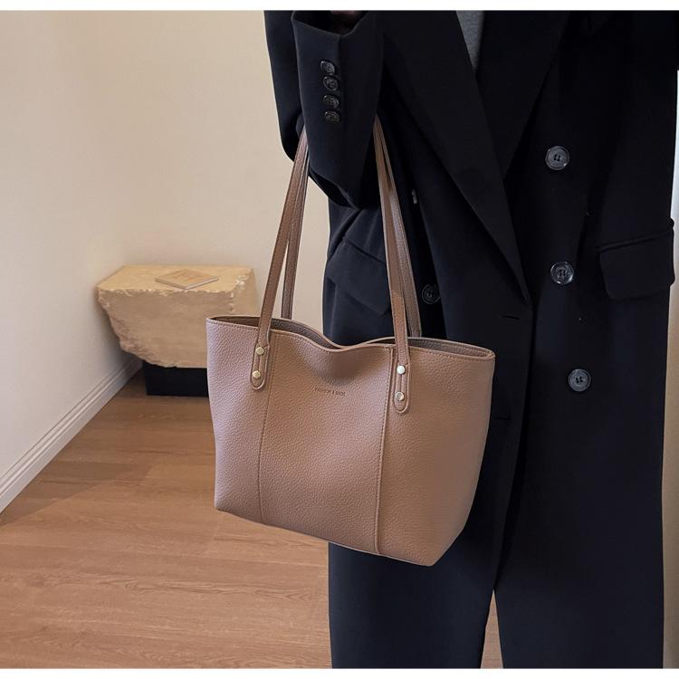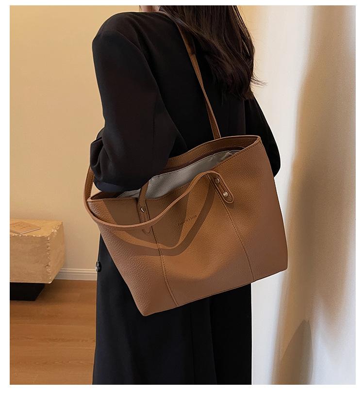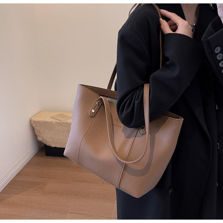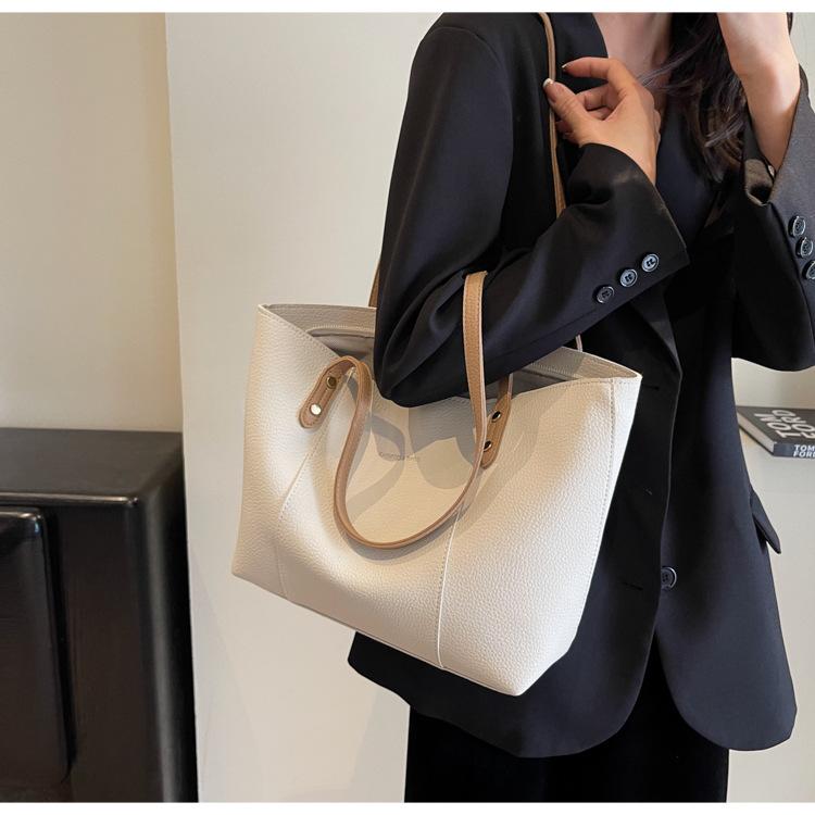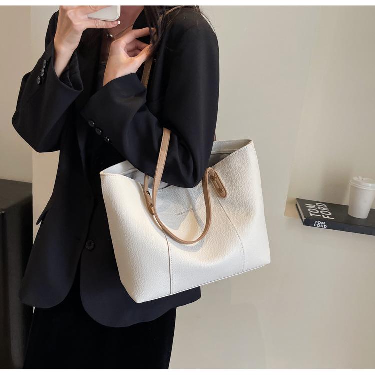 Bolso de Gran Capacidad para Mujer Otoño e Invierno Versátil 2025 Nuevo Casual Simple Bolso de Hombro Textura Clase Ropa de Trabajo Bolso Tote