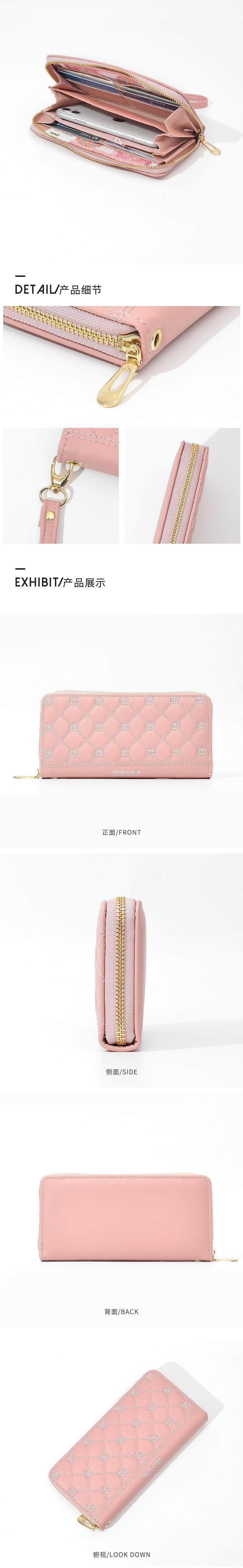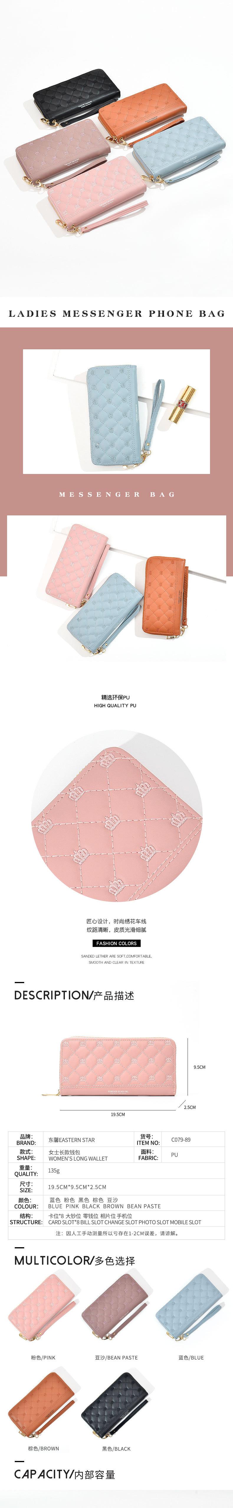 Nuevo bolso de mujer con cremallera, cartera de mano con corona larga bordada, cartera doble de gran capacidad, bolso para teléfono móvil