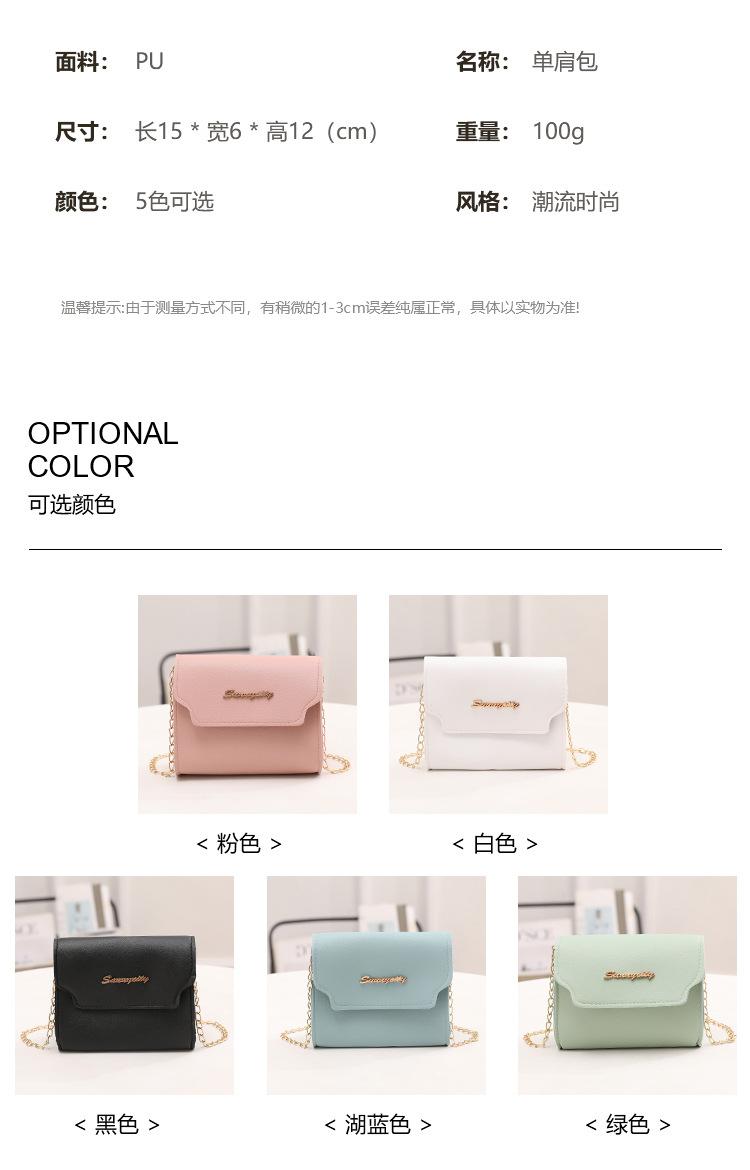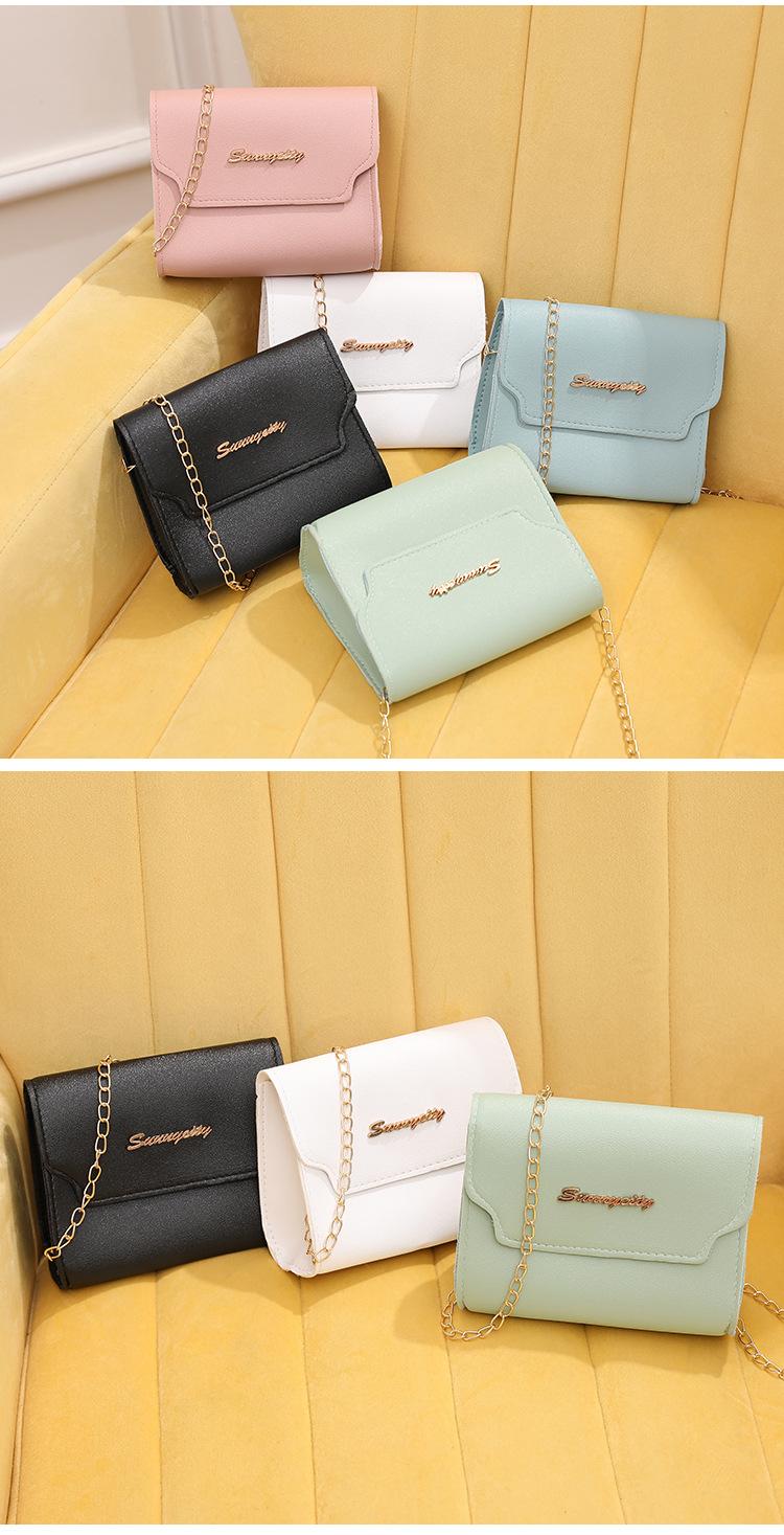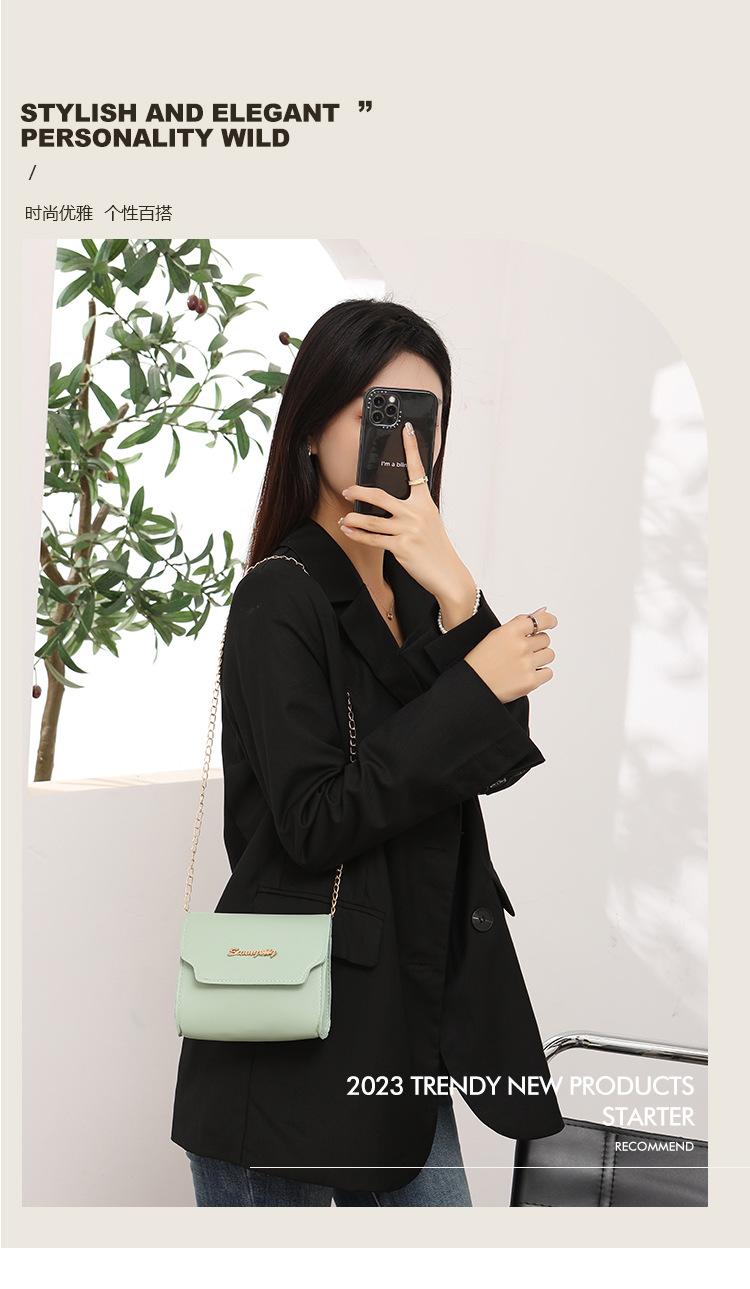Bolso de Mujer 2023 Nuevo Estilo Coreano Moda Simple Color Sólido Cadena Hombro Bolso Cuadrado Pequeño Pequeño Fresco Comercio Exterior Bolso Bandolera