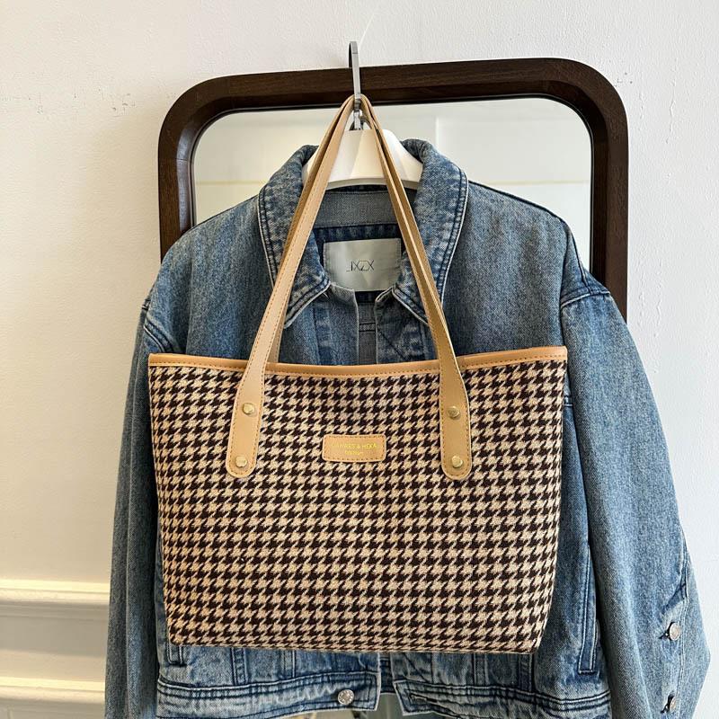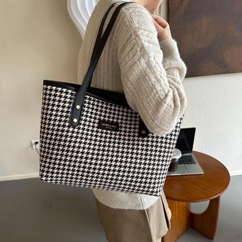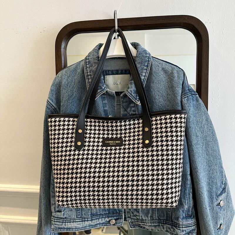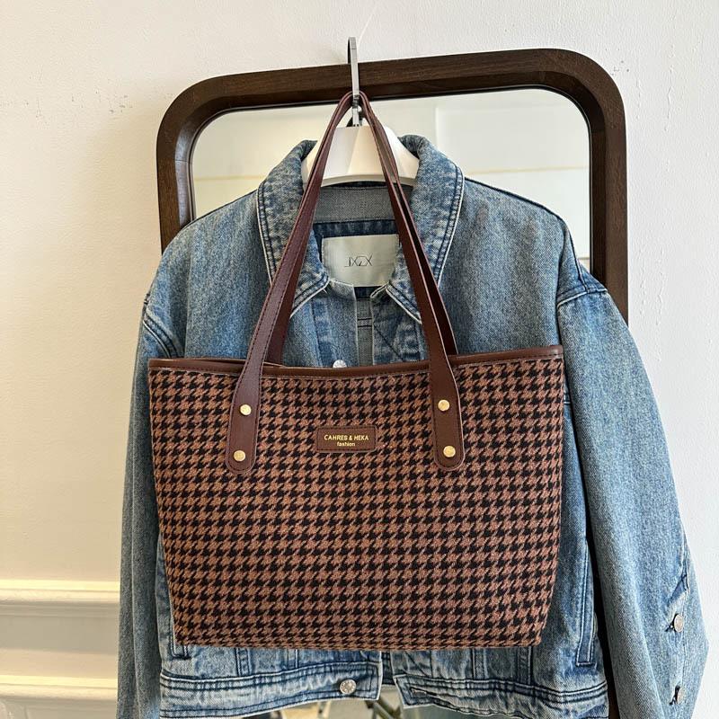 Bolso Tote de Gran Capacidad Bolso de Mujer 2025 Nuevo Casual Versátil Bolso de Mano Estilo Coreano Moda Cuadros Hombro Para Viajar