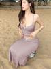 Europeo y Americano Comercio Exterior Transfronterizo Nuevo Francés Encaje Empalmado Calado Cintura Adelgazante Sexy Bodycon Vestido Sling Mujer