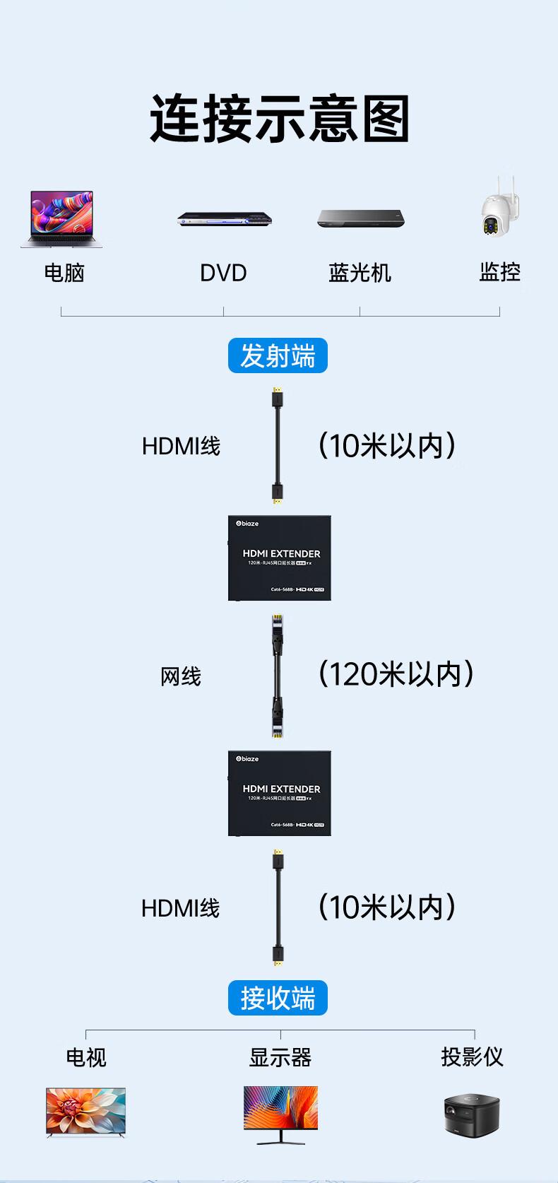 Extensor HDMI Biaz 120 M 4K HD cable de red puerto rj45 conversión transmisión amplificador de señal hdmi
