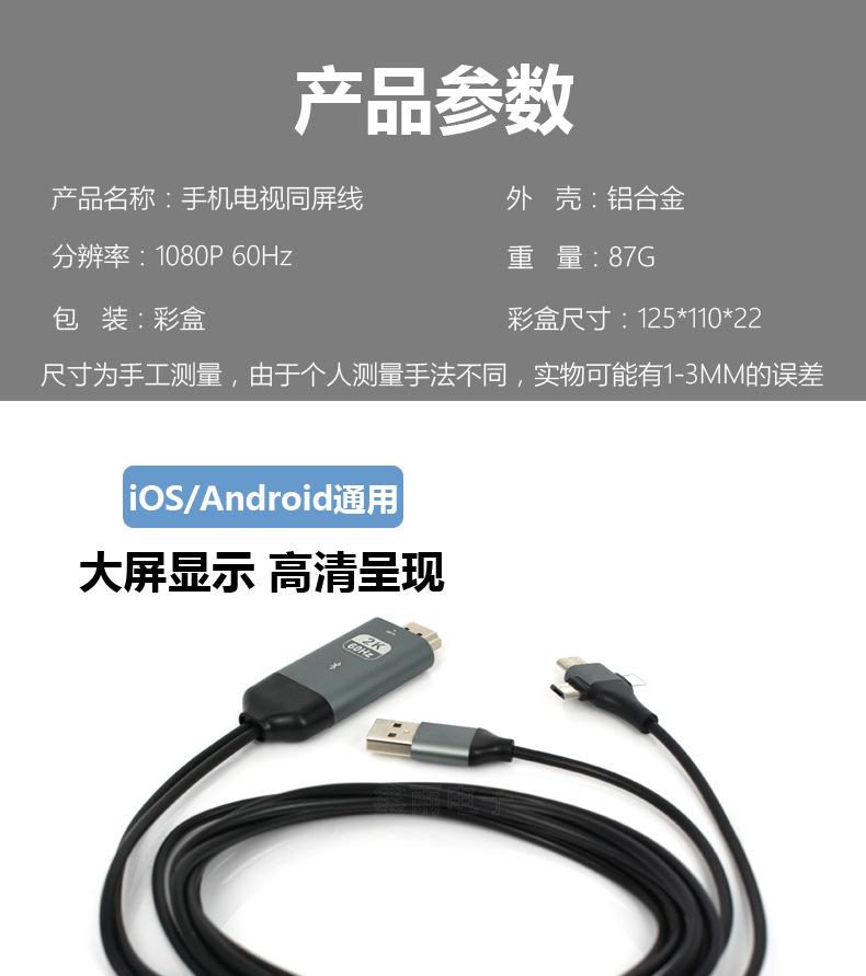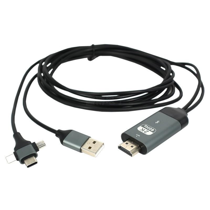 Cable tipo C a HDMI 1080p, tres en uno, cable de pantalla, teléfono móvil a pantalla HDMI, cable convertidor HDMI