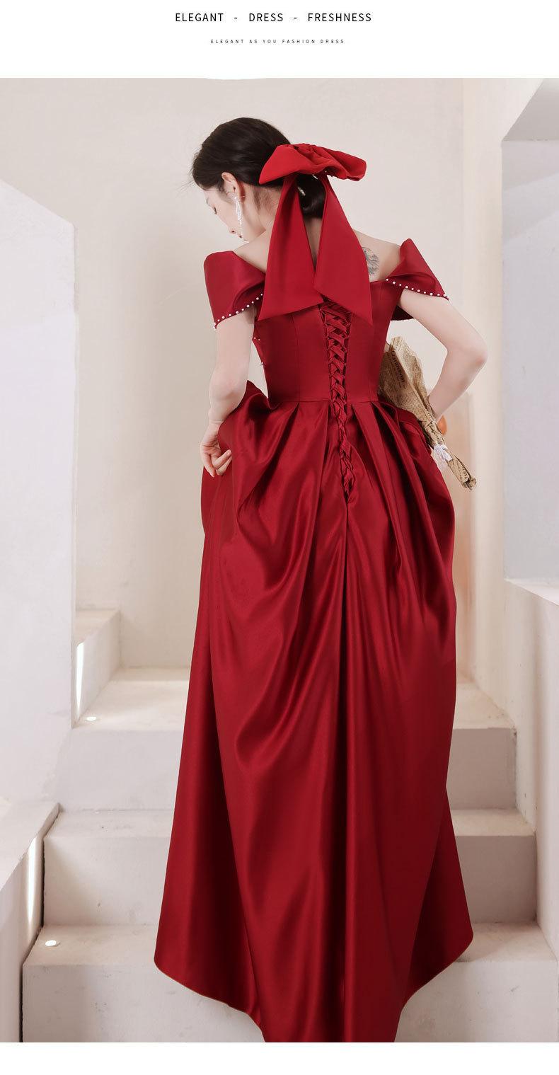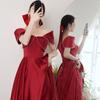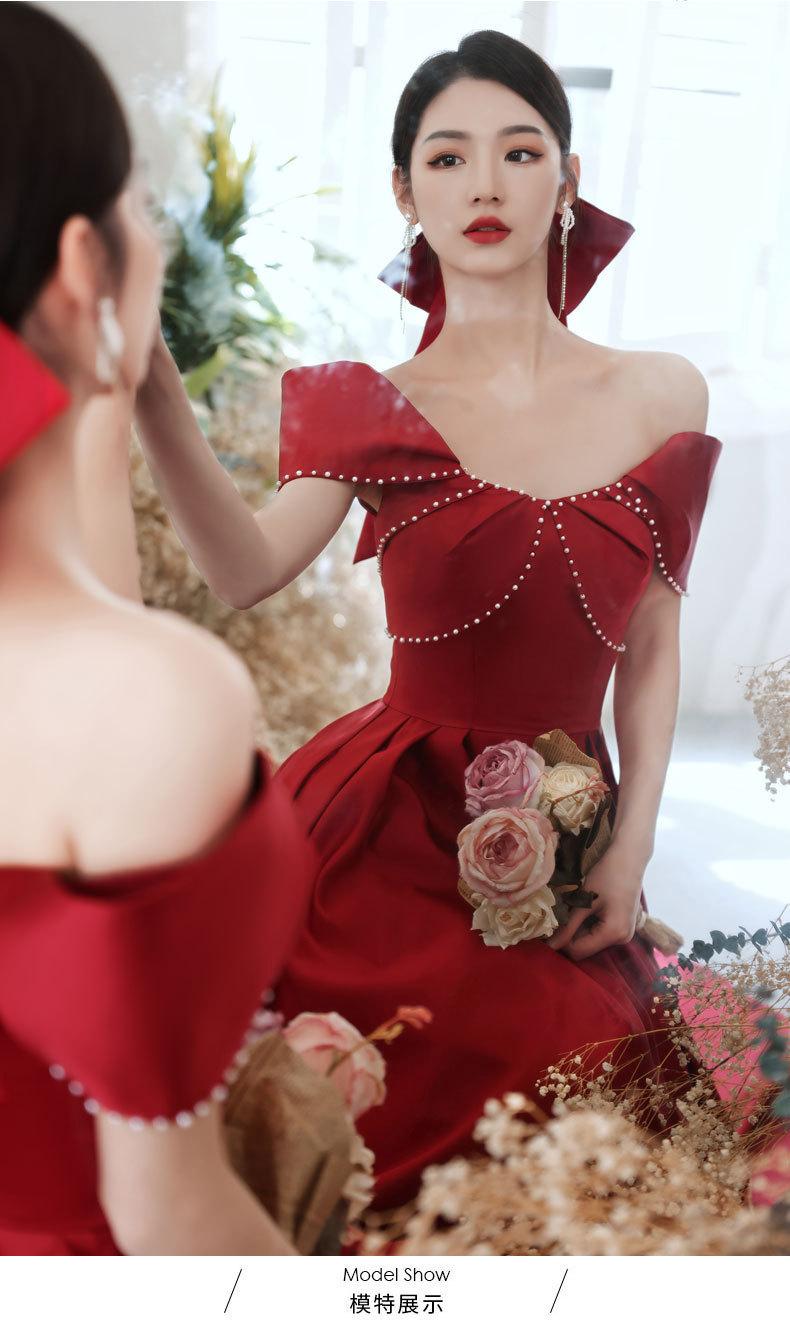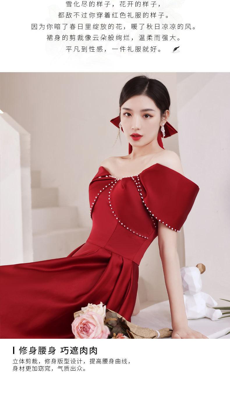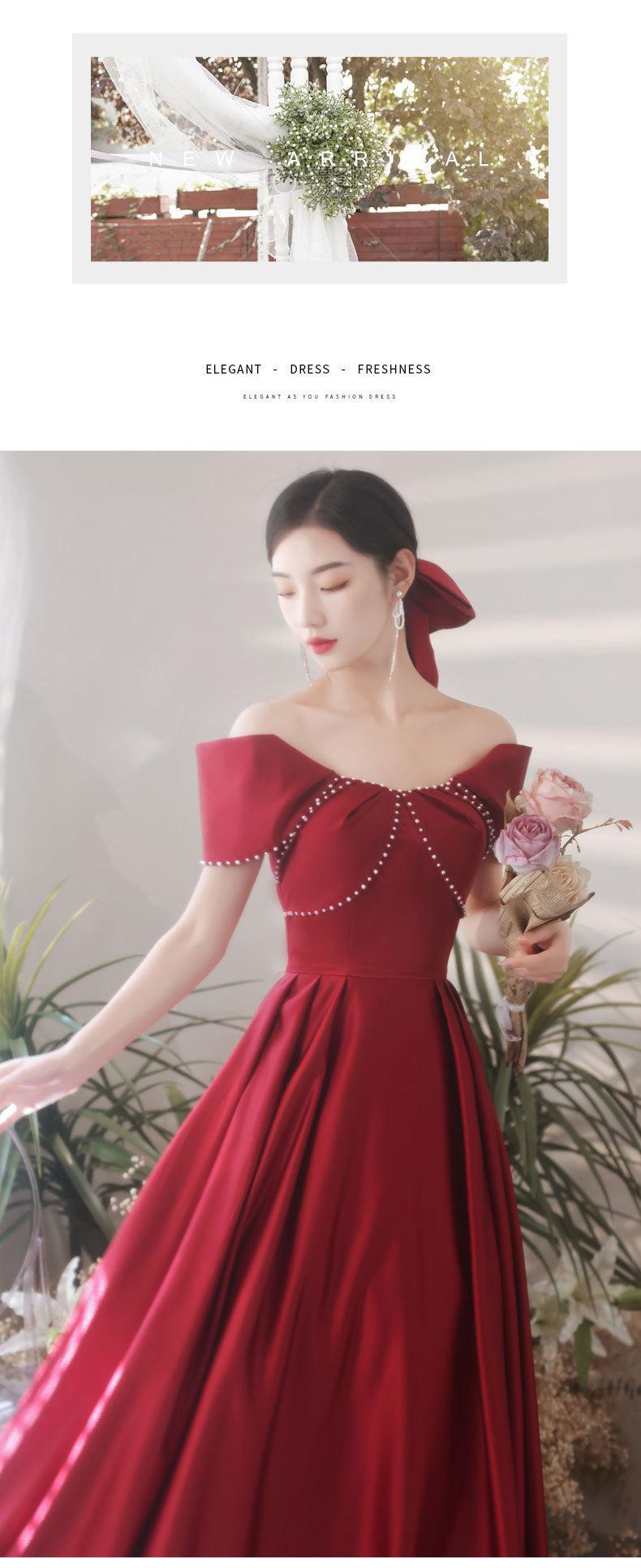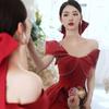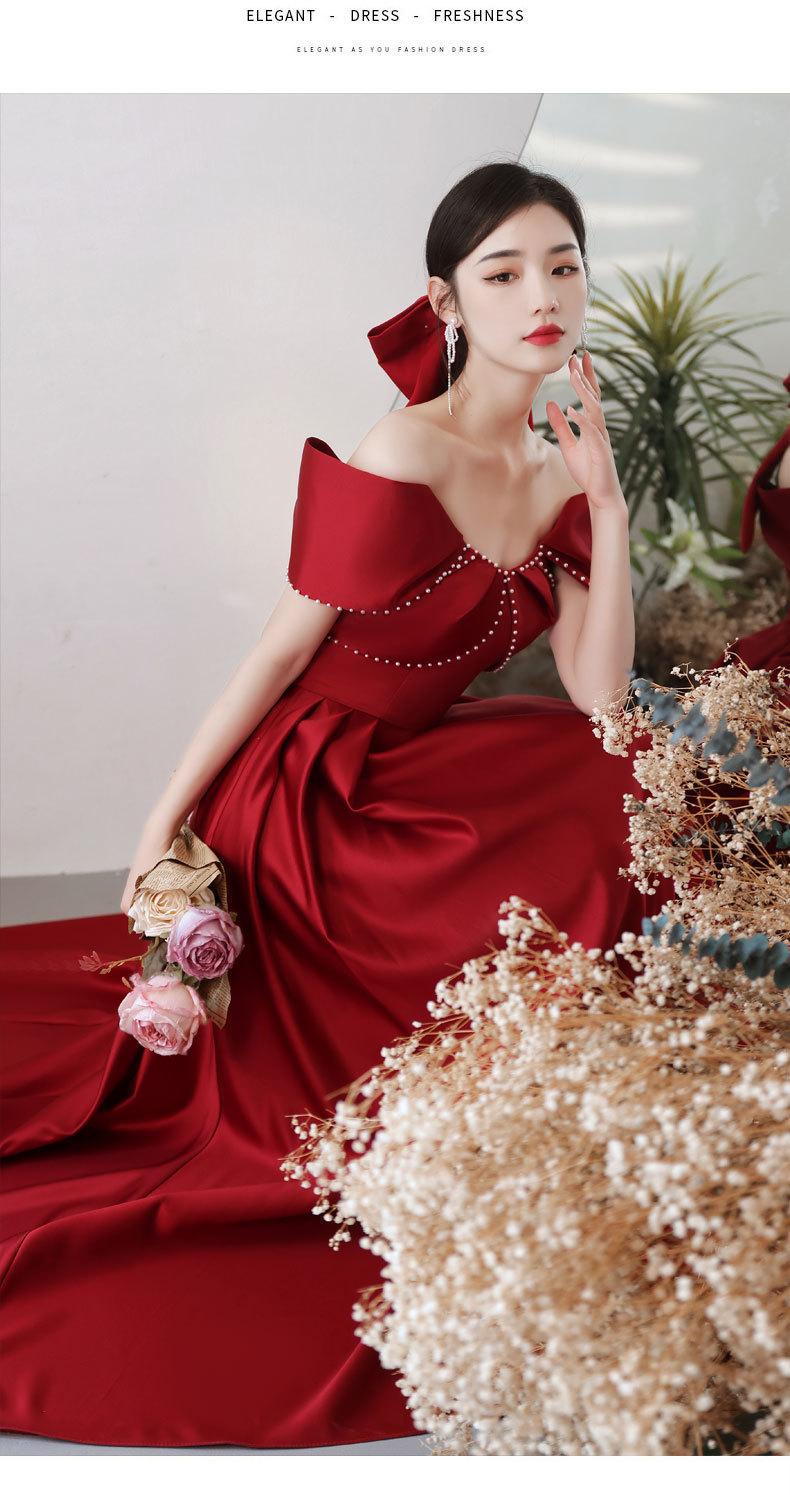 Vestido de Brindis de la Novia 2025 Nuevo Otoño Elegante Hombros Descubiertos Sencillo y Elegante Borgoña Compromiso Ajustado Vestido de Noche