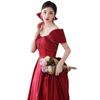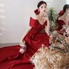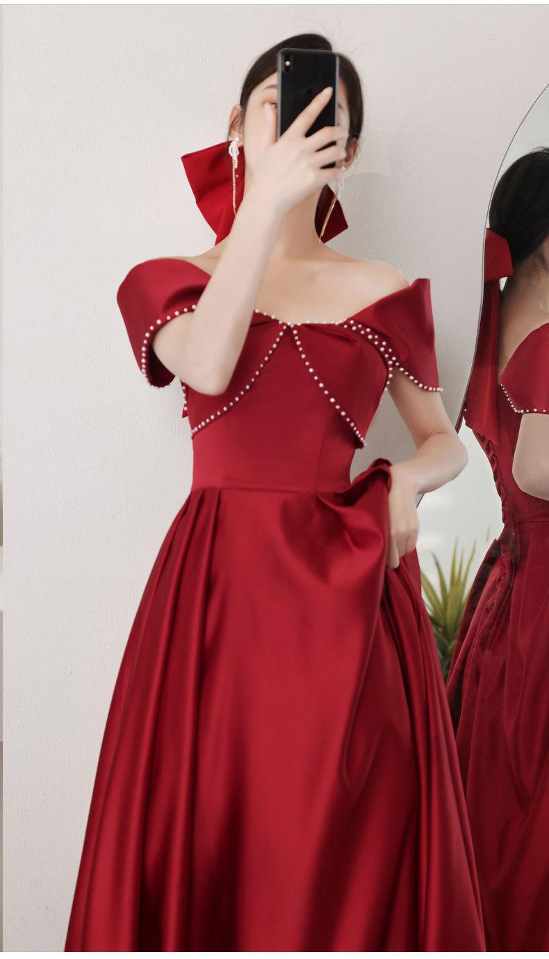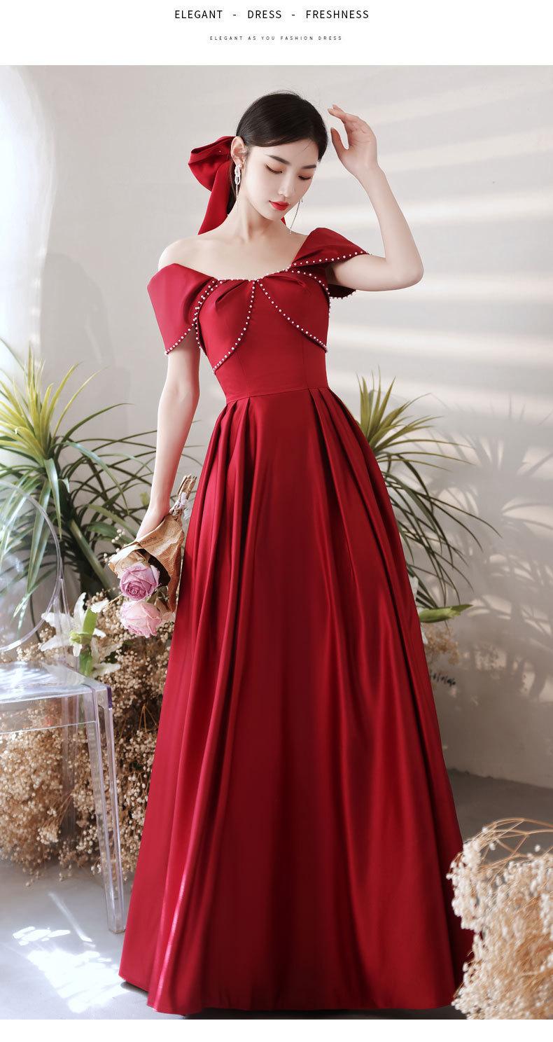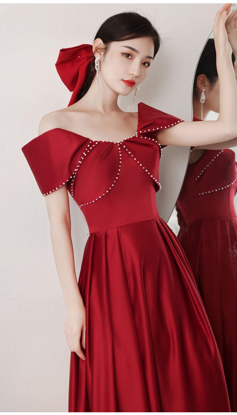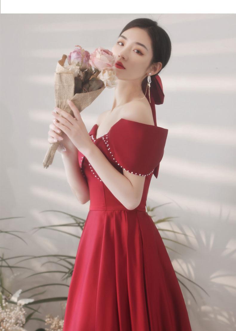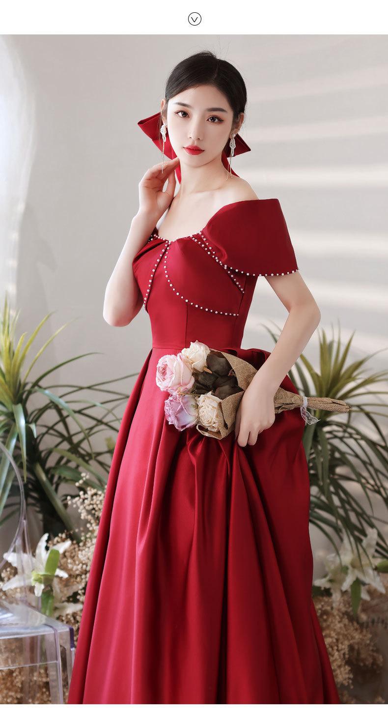 Vestido de Brindis de la Novia 2025 Nuevo Otoño Elegante Hombros Descubiertos Sencillo y Elegante Borgoña Compromiso Ajustado Vestido de Noche