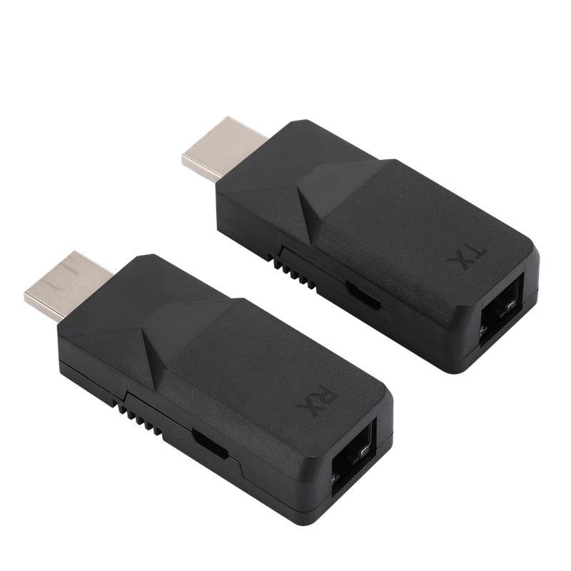 El amplificador y extensor de señal HDMI utiliza un cable de red RJ45 para extender video de alta definición 1080P hasta 50-60 metros de distancia. No solo supera las limitaciones de los cables HDMI, sino que también utiliza una estructura de puerto HDMI macho que es más conveniente y adaptable. También utiliza una mini carcasa de ABS para un mejor costo. Es pequeño, conveniente, plug-and-play, y es su mejor opción para expandir señales HDMI.