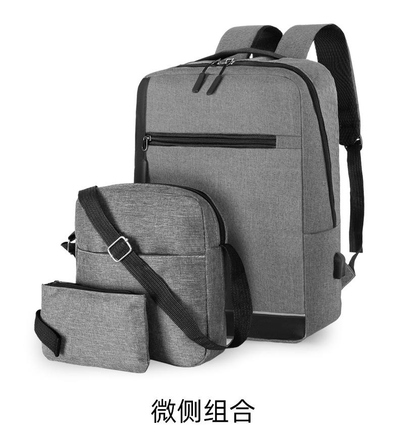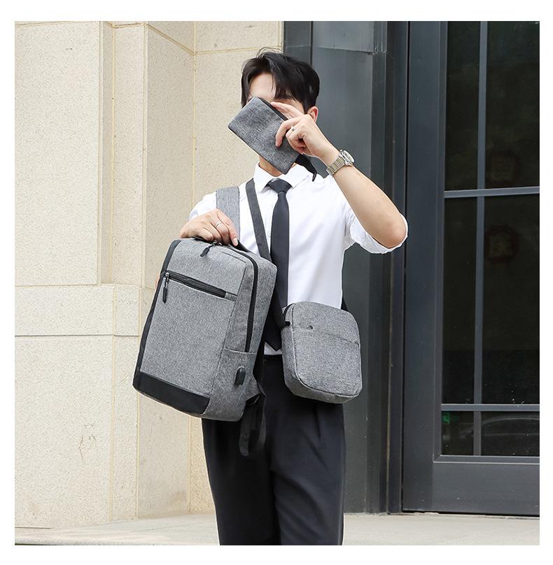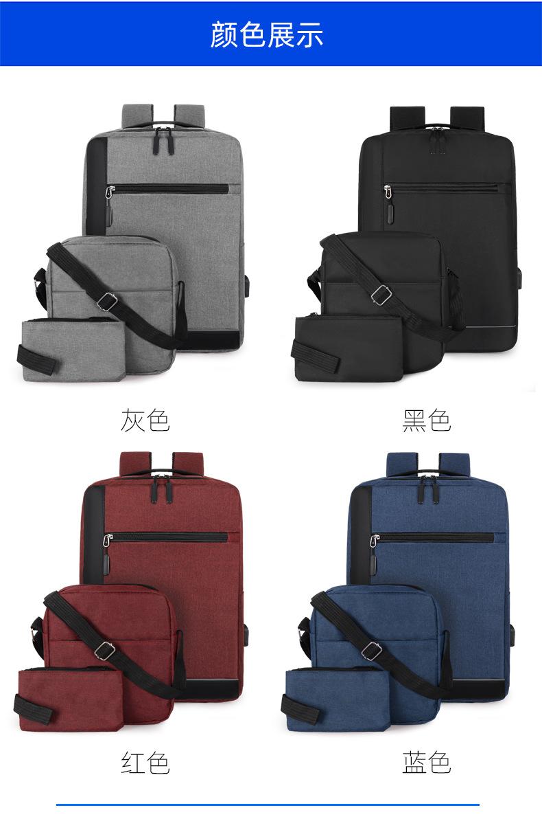 Mochila de tela Oxford nueva de fábrica, bolso de mano para ordenador de viaje de negocios, mochila informal con puerto USB para hombre, conjunto de tres piezas