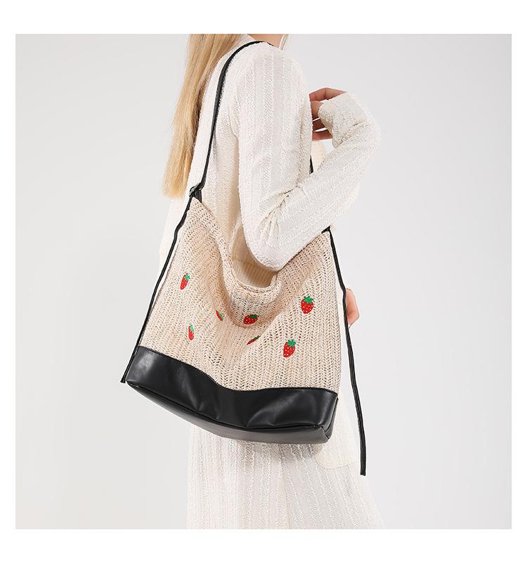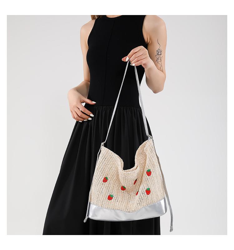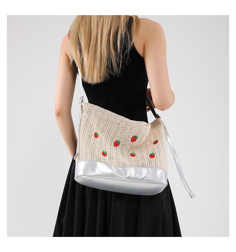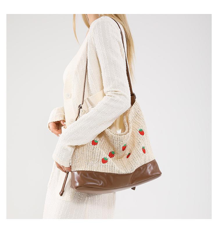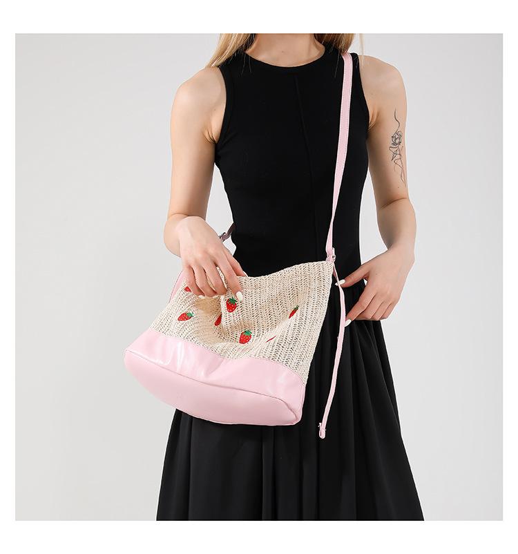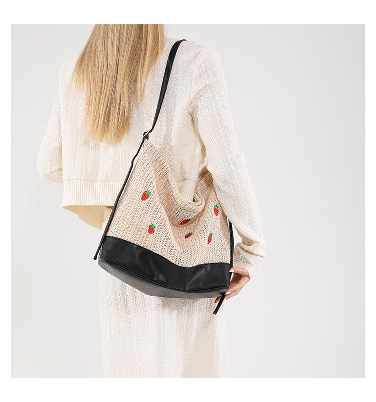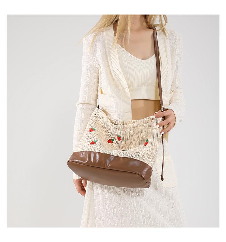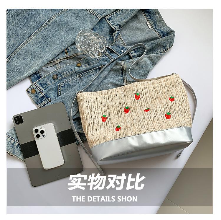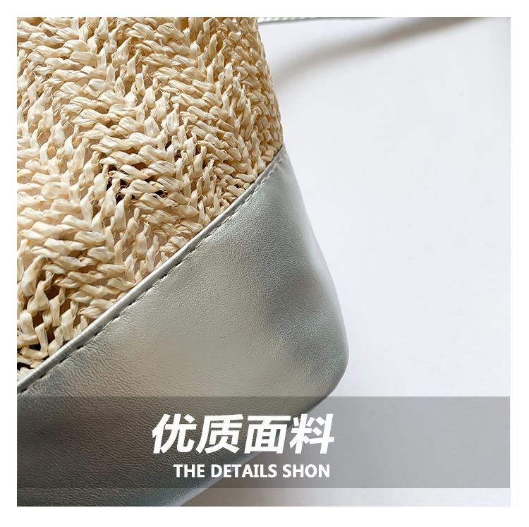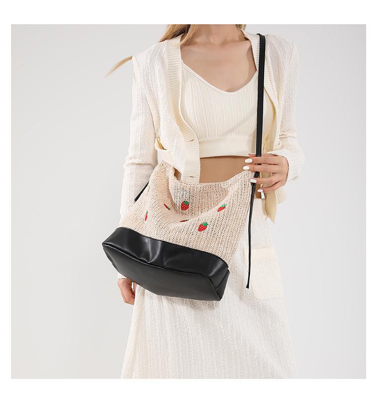Bolso de Cubo Tejido Transfronterizo para Mujer 2024 Casual Nuevo Verano Bolso Cruzado Moda Costuras Bolso Tote Portátil